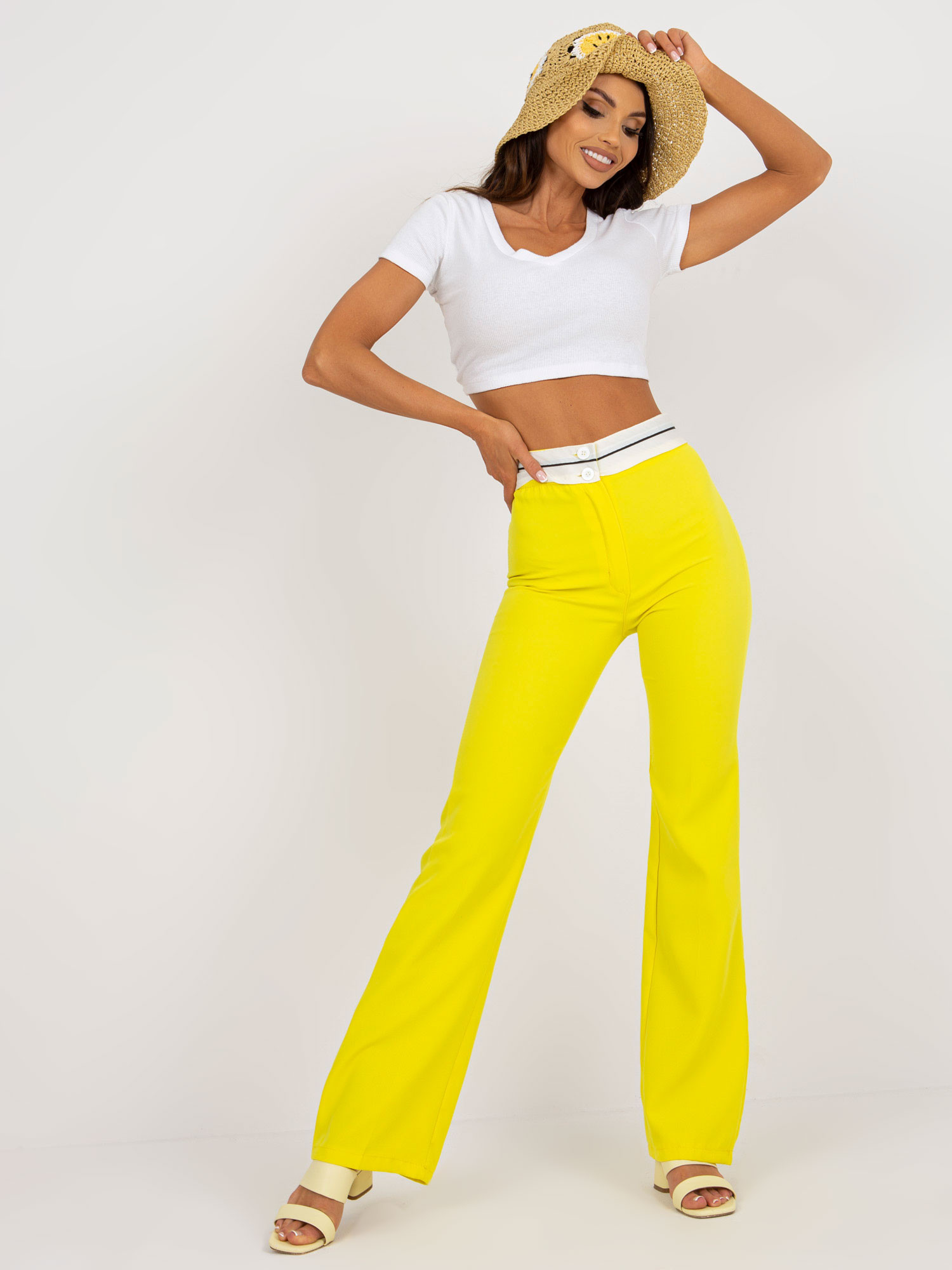 Žluté oblekové kalhoty z látky s okrajem . kód produktu: DHJ-SP-6971.33P dominantní vzor: hladký styl: elegantní, klasický příležitost: neformální, pracovní, rande, večírek Modelka má na sobě velikost S. Rozměry modelky: výška 168 cm, poprsí 89 cm, pas 60 cm, boky 91 cm. Rozměry kalhot ve velikosti S měřené na plocho: šířka v pase - 34 cm výška v pase - 29 cm, celková délka - 108 cm. Mezinárodní velikost Výška Obvod pasu Obvod boků Vnější délka nohavice Délka vnitřní nohavice S 36 160-168 72-80 90 87 74 M 38 162-172 78-86 94 90 75 L 40 164-174 84-90 102 94 76 XL 42 166-178 88-96 106 98 77 2XL 44 168-180 92-100 110 102 78
