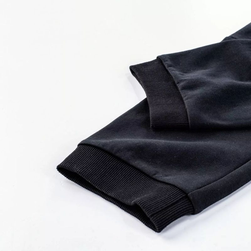 Vlastnosti: pánské tréninkové kalhoty volný střih boční kapsy na zip nohavice se stahovací šňůrkou v pase reflexní prvky Materiál: materiál: bavlna, polyester Barva: bavlna, polyester: černá