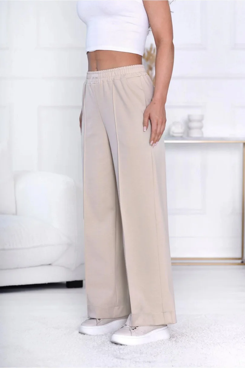 Zažijte výjimečné pohodlí a styl s našimi kalhotami Sambra! Díky rovnému střihu a širokým nohavicím jsou tyto kalhoty ideální volbou pro širokou škálu příležitostí. Jsou vyrobeny z měkké a pohodlné tkaniny s příměsí rayonu a poskytují příjemný pocit na kůži. Elastický pas s všitou gumičkou zaručuje dokonalé přizpůsobení různým tvarům postavy, zatímco dvě praktické boční kapsy dodávají funkčnost. Výrazný prošívaný okraj podtrhuje elegantní styl, díky čemuž se kalhoty hodí jak k ležérnímu, tak elegantnějšímu oblečení..