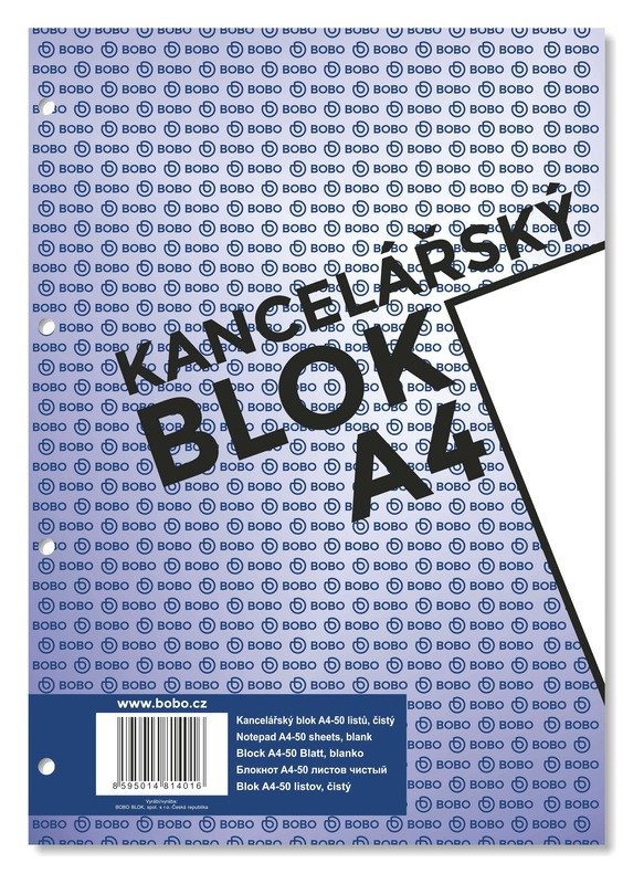 Ideální pomocník pro práci v kanceláři. Kancelářský blok s lepenou vazbou obsahuje 50 čistých listů z bezdřevého papíru, které jsou děrované 4 dírami, a tak můžete své poznámky snadno archivovat do pořadače či karis bloku. Díky svým vlastnostem se bloky, jak napovídá jejich název, hodí ideálně do kanceláře, ale vhodné jsou i do školy.