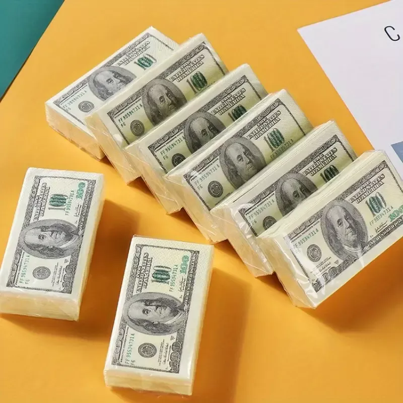 Tyto papírové kapesníky s designem dolarových bankovek dodají každému kapesníku nový rozměr.