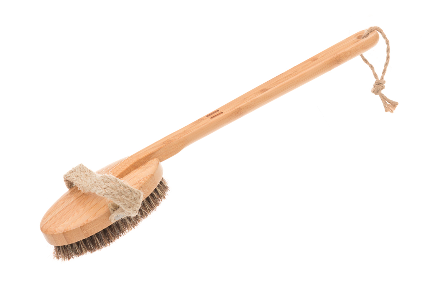 Kvalitní kartáč vyrobený z bambusu a přírodních štětin, délka rukojeti 41cm. Ideální na mytí celého těla po relaxaci v sauně, štětiny jsou šetrné k pokožce. Odnímatelná rukojeť.
