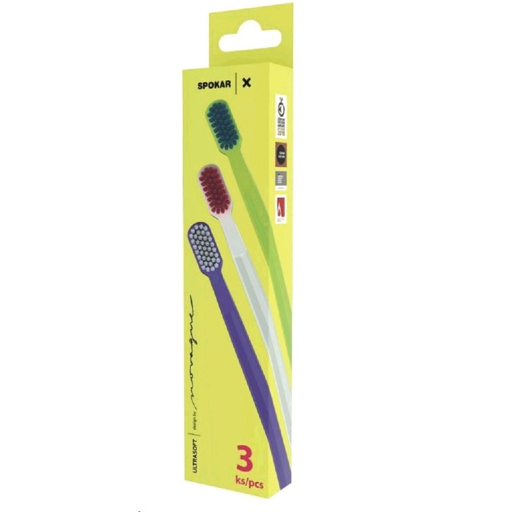 Spokar X 3429 soft, supersoft a ultrasoft zubní kartáček Dokonale ergonomický tvar nové řady kartáčků Spokar X je výsledkem aktuálního doporučení stomatologických odborníků. Snadná a pohodlná manipulace s kartáčkem Vás povede k perfektnímu vyčištění zubů. Superměkká vlákna efektivně odstraňují plak a jsou šetrná k dásním. Hlavní vlastnosti: kartáček účinně odstraňuje zubní plak ergonomická rukojeť pro pohodlné čištění jemná vlákna jsou šetrná k zubům i dásním svěží, originální i praktický design SOFT: Tvrdost: Měkký Počet vláken: více než 2500 vláken Vlákna: se zaoblenými konci o průměru 0,15 mm SUPERSOFT: Tvrdost: Super měkký Počet vláken: více než 3500 vláken Vlákna: se zaoblenými konci o průměru 0,12 mm ULTRASOFT: Tvrdost: Ultra měkký Počet vláken: více než 5500 vláken Vlákna: se zaoblenými konci o průměru 0,10 mm Použití Používejte zubní kartáček alespoň 2x denně, nejlépe ráno a večer po posledním jídle. Čistěte si zuby dokud nejsou dokonale hladké. Výsledek můžete zkontrolovat přejetím jazykem. O značce Autorem tohoto kartáčku je přední český designér MgA. Petr Novague. Za design kartáčku již získal několik mezinárodních ocenění. do poznámky v objednávce prosím uveďte požadovaný typ a barvu