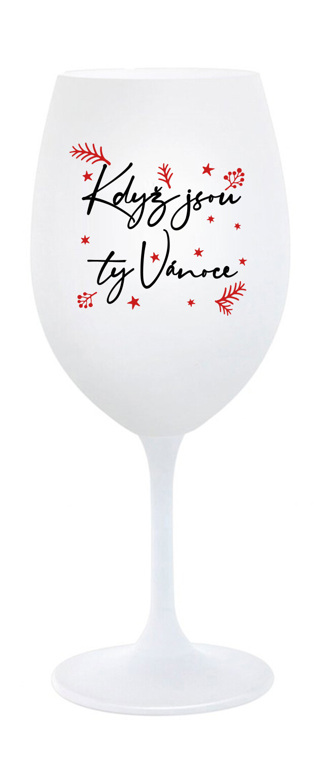 Vinná bílá sklenice s originálním motivem KDYŽ JSOU TY VÁNOCE je krásným a osobitým dárkem, které ale využijete i Vy sami třeba ve chvílích, kdy si budete chtít zpříjemnit náročný den. Tyto originální vinné sklenice jsou totiž nejen pro výjimečné události, ale i pro běžné večery, které si chcete zpříjemnit sklenkou dobrého vína. Jistě proto potěší každého milovníka vína, i toho, kdo si umí svůj život vychutnat plnými doušky.
