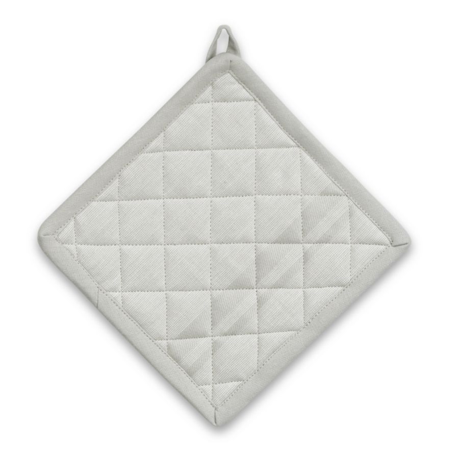 Vytáhnout rozpálený pekáč z trouby holýma rukama zvládne málokdo, kuchyňská chňapka proto nesmí chybět v žádné domácnosti. Model chňapky TIA čtvercového tvaru je dostatečně velký pro bezpečnou manipulaci s rozpáleným nádobím jakéhokoliv druhu. Horké pečící plechy, pekáče i kastroly přemisťujte vždy s bavlněnou chňapkou. Stejně dobře poslouží čtvercová chňapka jako podložka pod horké nádobí na kuchyňské lince i na stole. V sérii kuchyňského textilu TIA lze doplnit a vzájemně kombinovat utěrky na nádobí, kuchyňské ručníky i zástěry a to v několika různých pastelových barvách. - materiál: 100% bavlna- kvalita a měkkost: 190 gsm- poutko na zavěšení kdekoli v kuchyni- rozměr: 20 x 20 cm- barva: šedá- značka: KELA