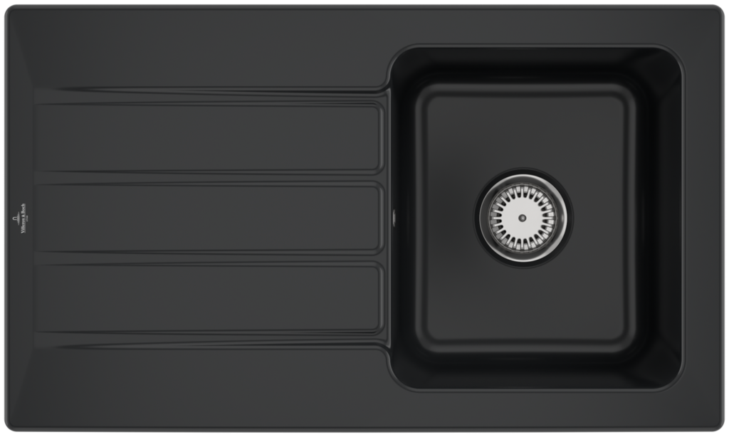 Keramický dřez pro horní montáž, bez excentru, barva Pure Black, šířka 86 cm (nástupce za 335001S5 Ebony)Keramický dřez Villeroy & Boch Architectura je vyroben z materiálu CeramicPlus, který zajišťuje vyjímečnou tvrdost, odolnost proti poškrábání nebo jinému poškození a také odolnost proti vysokým teplotám. Povrch je odolný proti cizím látkám a nečistotám, takže se výborně čistí a potraviny na něm nezanechávají žádné stopy. Materiál CeramicPlus je vyroben ze 100% přírodních materiálů, je barevně stálý a nepřijímá chutě ani zápachy, takže ja absolutně nezávadný pro potraviny. Materiál: keramika s úpravou CeramicPlus Barva: Pure Black, černá matná Dřez je určen pro horní montáž na pracovní desku Dřez je oboustranný - vanička může být napravo nebo nalevo Obsahuje odpadovou sadu bez excentru (ruční ovládání výpusti) a sítko na nečistoty Sifon není součástí dodávky (možno doobjednat pod označením 94060000) Rozměry dřezu (ŠxHxV): 860 x 510 x 220 mm Rozměry výřezu (ŠxH): 830 x 480 mm Minimální šířka skříňky: 500 mm Hmotnost: 23,28 kg Při objednávce uvádějte číslo otvoru pro baterii - viz nákres Tento typ dřezu se vyrábí v barvách White alpin, Stone White, Cream, Ivory, Almond, Steam, Fossil, Stone, Graphite, Pure Black, Snow White, Timber, Chromite. Tento dřez s odpadovou sadou s excentrem je na poptávku.