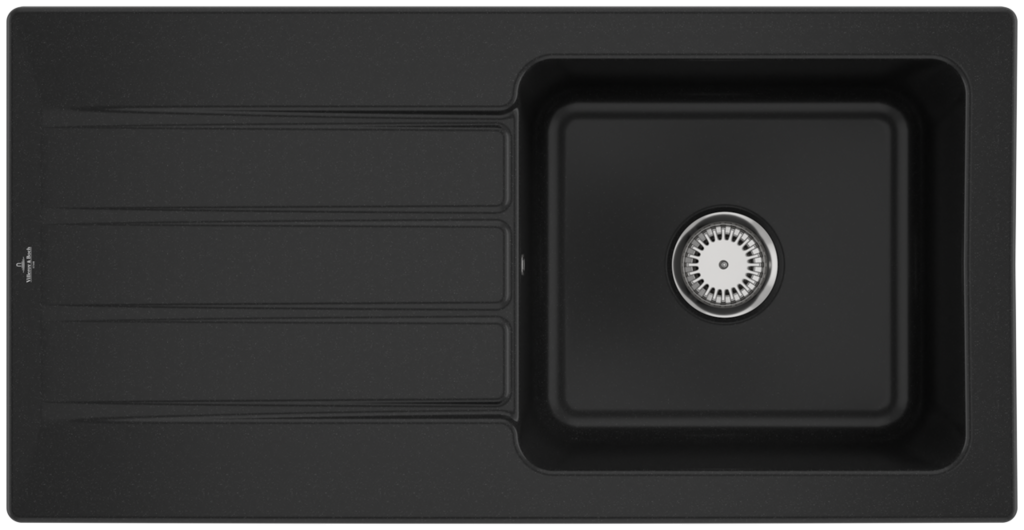 Keramický dřez pro horní montáž, bez excentru, barva Chromit, šířka 100 cm.Keramický dřez Villeroy & Boch Architectura je vyroben z materiálu CeramicPlus, který zajišťuje vyjímečnou tvrdost, odolnost proti poškrábání nebo jinému poškození a také odolnost proti vysokým teplotám. Povrch je odolný proti cizím látkám a nečistotám, takže se výborně čistí a potraviny na něm nezanechávají žádné stopy. Materiál CeramicPlus je vyroben ze 100% přírodních materiálů, je barevně stálý a nepřijímá chutě ani zápachy, takže ja absolutně nezávadný pro potraviny. Materiál: keramika s úpravou CeramicPlus Barva: Chromit, lesklá Dřez je určen pro horní montáž na pracovní desku Dřez je oboustranný - vanička může být napravo nebo nalevo Obsahuje odpadovou sadu bez excentru (ruční ovládání výpusti) a sítko na nečistoty Sifon není součástí dodávky (možno doobjednat pod označením 94060000) Rozměry dřezu (ŠxHxV): 1000 x 510 x 220 mm Rozměry výřezu (ŠxH): 970 x 480 mm Minimální šířka skříňky: 600 mm Hmotnost: 26,35 kg Při objednávce uvádějte číslo otvoru pro baterii - viz nákres Tento typ dřezu se vyrábí v barvách White alpin, Stone White, Cream, Ivory, Almond, Steam, Fossil, Stone, Graphite, Pure Black, Snow White, Timber, Chromite. Tento dřez s odpadovou sadou s excentrem je na poptávku.