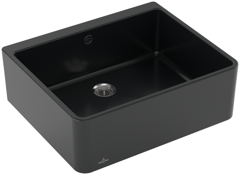 Keramický dřez modulový, bez excentru, barva Pure Black, šířka 59,5 cmKeramický dřez Villeroy & Boch Farmhouse je vyroben z materiálu CeramicPlus, který zajišťuje vyjímečnou tvrdost, odolnost proti poškrábání nebo jinému poškození a také odolnost proti vysokým teplotám. Povrch je odolný proti cizím látkám a nečistotám, takže se výborně čistí a potraviny na něm nezanechávají žádné stopy. Materiál CeramicPlus je vyroben ze 100% přírodních materiálů, je barevně stálý a nepřijímá chutě ani zápachy, takže ja absolutně nezávadný pro potraviny. Materiál: keramika s úpravou CeramicPlus Barva: Pure Black, černá matná Dřez je určen pro montáž na spodní skříňku Zadní strana dřezu není glazovaná Doporučuje se montáž do pracovní desky s přírodního nebo umělého kamene, nebo z keramiky Obsahuje odpadovou sadu bez excentru (ruční ovládání výpusti), sítko na nečistoty a sadu pro montáž na skříňku Sifon není součástí dodávky (možno doobjednat pod označením 94060000) Rozměry dřezu (ŠxHxV): 595 x 500 x 200 mm Hloubka vaničky 180 mm Minimální šířka skříňky: 600 mm Hmotnost: 25,7 kg Tento dřez se vyrábí v barvách White alpin, Stone White, Cream a Pure Black. Dřez s odpadovou sadou s excentrem je na poptávku.