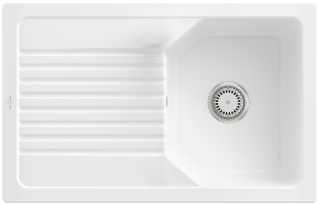 Keramický dřez pro horní montáž, bez excentru, barva White alpin, šířka 80 cmKeramický dřez Villeroy & Boch Linara je vyroben z materiálu CeramicPlus, který zajišťuje vyjímečnou tvrdost, odolnost proti poškrábání nebo jinému poškození a také odolnost proti vysokým teplotám. Povrch je odolný proti cizím látkám a nečistotám, takže se výborně čistí a potraviny na něm nezanechávají žádné stopy. Materiál CeramicPlus je vyroben ze 100% přírodních materiálů, je barevně stálý a nepřijímá chutě ani zápachy, takže ja absolutně nezávadný pro potraviny. Materiál: keramika s úpravou CeramicPlus Barva: White alpin (alpská bílá), lesklá Dřez je určen pro horní montáž na pracovní desku Dřez je oboustranný - vanička může být napravo nebo nalevo Obsahuje odpadovou sadu bez excentru (ruční ovládání výpusti) a sítko na nečistoty Sifon není součástí dodávky (možno doobjednat pod označením 94060000) Rozměry dřezu (ŠxHxV): 800 x 510 x 200 mm Rozměry výřezu (ŠxH): 770 x 480 mm Minimální šířka skříňky: 450 mm Hmotnost: 21 kg Při objednávce uvádějte číslo otvoru pro baterii - viz nákres Tento typ dřezu se vyrábí v barvách White alpin, Stone White, Cream, Ivory, Almond, Steam, Fossil, Stone, Graphite, Pure Black, Snow White, Timber, Chromite. Tento dřez s odpadovou sadou s excentrem je na poptávku.