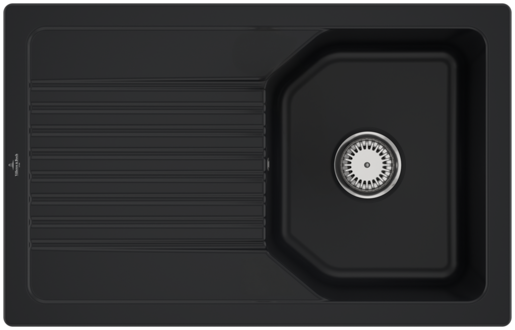 Keramický dřez pro horní montáž, bez excentru, barva Pure black, šířka 80 cmKeramický dřez Villeroy & Boch Linara je vyroben z materiálu CeramicPlus, který zajišťuje vyjímečnou tvrdost, odolnost proti poškrábání nebo jinému poškození a také odolnost proti vysokým teplotám. Povrch je odolný proti cizím látkám a nečistotám, takže se výborně čistí a potraviny na něm nezanechávají žádné stopy. Materiál CeramicPlus je vyroben ze 100% přírodních materiálů, je barevně stálý a nepřijímá chutě ani zápachy, takže ja absolutně nezávadný pro potraviny. Materiál: keramika s úpravou CeramicPlus Barva: Pure black, černá matná Dřez je určen pro horní montáž na pracovní desku Dřez je oboustranný - vanička může být napravo nebo nalevo Obsahuje odpadovou sadu bez excentru (ruční ovládání výpusti) a sítko na nečistoty Sifon není součástí dodávky (možno doobjednat pod označením 94060000) Rozměry dřezu (ŠxHxV): 800 x 510 x 200 mm Rozměry výřezu (ŠxH): 770 x 480 mm Minimální šířka skříňky: 450 mm Hmotnost: 21 kg Při objednávce uvádějte číslo otvoru pro baterii - viz nákres Tento typ dřezu se vyrábí v barvách White alpin, Stone White, Cream, Ivory, Almond, Steam, Fossil, Stone, Graphite, Pure Black, Snow White, Timber, Chromite. Tento dřez s odpadovou sadou s excentrem je na poptávku.