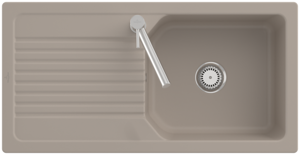 Keramický dřez pro horní montáž, bez excentru, barva Almond, šířka 100 cmKeramický dřez Villeroy & Boch Linara je vyroben z materiálu CeramicPlus, který zajišťuje vyjímečnou tvrdost, odolnost proti poškrábání nebo jinému poškození a také odolnost proti vysokým teplotám. Povrch je odolný proti cizím látkám a nečistotám, takže se výborně čistí a potraviny na něm nezanechávají žádné stopy. Materiál CeramicPlus je vyroben ze 100% přírodních materiálů, je barevně stálý a nepřijímá chutě ani zápachy, takže ja absolutně nezávadný pro potraviny. Materiál: keramika s úpravou CeramicPlus Barva: Almond, matná Dřez je určen pro horní montáž na pracovní desku Dřez je oboustranný - vanička může být napravo nebo nalevo Obsahuje odpadovou sadu bez excentru (ruční ovládání výpusti) a sítko na nečistoty Sifon není součástí dodávky (možno doobjednat pod označením 94060000) Rozměry dřezu (ŠxHxV): 1000 x 510 x 200 mm Rozměry výřezu (ŠxH): 970 x 480 mm Minimální šířka skříňky: 600 mm Hmotnost: 24 kg Při objednávce uvádějte číslo otvoru pro baterii - viz nákres Tento typ dřezu se vyrábí v barvách White alpin, Stone White, Cream, Ivory, Almond, Steam, Fossil, Stone, Graphite, Pure Black, Snow White, Timber, Chromite. Tento dřez s odpadovou sadou s excentrem je na poptávku.
