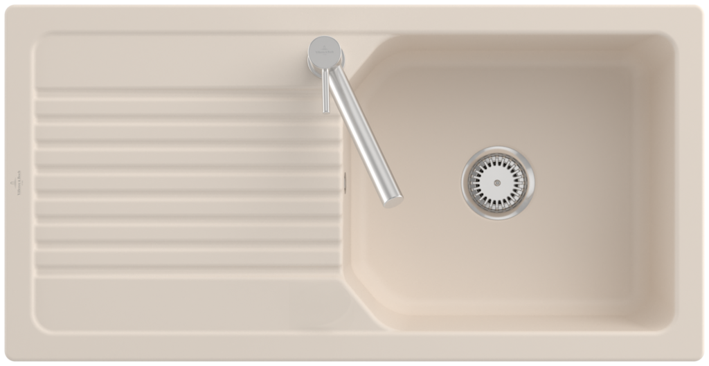 Keramický dřez pro horní montáž, bez excentru, barva Ivory, šířka 100 cmKeramický dřez Villeroy & Boch Linara je vyroben z materiálu CeramicPlus, který zajišťuje vyjímečnou tvrdost, odolnost proti poškrábání nebo jinému poškození a také odolnost proti vysokým teplotám. Povrch je odolný proti cizím látkám a nečistotám, takže se výborně čistí a potraviny na něm nezanechávají žádné stopy. Materiál CeramicPlus je vyroben ze 100% přírodních materiálů, je barevně stálý a nepřijímá chutě ani zápachy, takže ja absolutně nezávadný pro potraviny. Materiál: keramika s úpravou CeramicPlus Barva: Ivory, matná Dřez je určen pro horní montáž na pracovní desku Dřez je oboustranný - vanička může být napravo nebo nalevo Obsahuje odpadovou sadu bez excentru (ruční ovládání výpusti) a sítko na nečistoty Sifon není součástí dodávky (možno doobjednat pod označením 94060000) Rozměry dřezu (ŠxHxV): 1000 x 510 x 200 mm Rozměry výřezu (ŠxH): 970 x 480 mm Minimální šířka skříňky: 600 mm Hmotnost: 24 kg Při objednávce uvádějte číslo otvoru pro baterii - viz nákres Tento typ dřezu se vyrábí v barvách White alpin, Stone White, Cream, Ivory, Almond, Steam, Fossil, Stone, Graphite, Pure Black, Snow White, Timber, Chromite. Tento dřez s odpadovou sadou s excentrem je na poptávku.