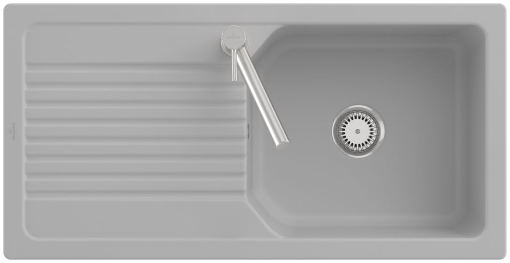 Keramický dřez pro horní montáž, bez excentru, barva Steam, šířka 100 cmKeramický dřez Villeroy & Boch Linara je vyroben z materiálu CeramicPlus, který zajišťuje vyjímečnou tvrdost, odolnost proti poškrábání nebo jinému poškození a také odolnost proti vysokým teplotám. Povrch je odolný proti cizím látkám a nečistotám, takže se výborně čistí a potraviny na něm nezanechávají žádné stopy. Materiál CeramicPlus je vyroben ze 100% přírodních materiálů, je barevně stálý a nepřijímá chutě ani zápachy, takže ja absolutně nezávadný pro potraviny. Materiál: keramika s úpravou CeramicPlus Barva: Steam, matná Dřez je určen pro horní montáž na pracovní desku Dřez je oboustranný - vanička může být napravo nebo nalevo Obsahuje odpadovou sadu bez excentru (ruční ovládání výpusti) a sítko na nečistoty Sifon není součástí dodávky (možno doobjednat pod označením 94060000) Rozměry dřezu (ŠxHxV): 1000 x 510 x 200 mm Rozměry výřezu (ŠxH): 970 x 480 mm Minimální šířka skříňky: 600 mm Hmotnost: 24 kg Při objednávce uvádějte číslo otvoru pro baterii - viz nákres Tento typ dřezu se vyrábí v barvách White alpin, Stone White, Cream, Ivory, Almond, Steam, Fossil, Stone, Graphite, Pure Black, Snow White, Timber, Chromite. Tento dřez s odpadovou sadou s excentrem je na poptávku.