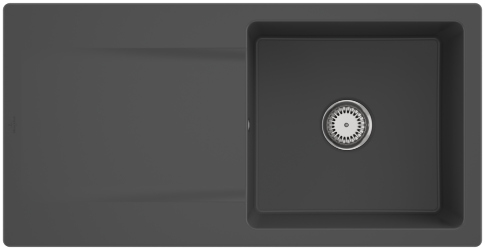Keramický dřez pro horní montáž, bez excentru, barva Graphit, šířka 100 cmKeramický dřez Villeroy & Boch Siluet je vyroben z materiálu TitanCeram, který zajišťuje vyjímečnou tvrdost, odolnost proti poškrábání nebo jinému poškození a také odolnost proti vysokým teplotám. Povrch je odolný proti cizím látkám a nečistotám, takže se výborně čistí a potraviny na něm nezanechávají žádné stopy. Materiál CeramicPlus je vyroben ze 100% přírodních materiálů, je barevně stálý a nepřijímá chutě ani zápachy, takže ja absolutně nezávadný pro potraviny. Materiál: keramika s úpravou TitanCeram Barva: Graphit, matná Dřez je určen pro horní montáž na pracovní desku Dřez je oboustranný - vanička může být napravo nebo nalevo Obsahuje odpadovou sadu bez excentru (ruční ovládání výpusti) a sítko na nečistoty Sifon není součástí dodávky (možno doobjednat pod označením 94060000) Rozměry dřezu (ŠxHxV): 1000 x 510 x 220 mm Rozměry výřezu (ŠxH): 970 x 480 mm Minimální šířka skříňky: 600 mm Hmotnost: 26,4 kg Při objednávce uvádějte číslo otvoru pro baterii - viz nákres Tento typ dřezu se vyrábí v barvách White alpin, Stone White, Cream, Ivory, Almond, Steam, Fossil, Stone, Graphite, Pure Black, Snow White, Timber, Chromite. Tento dřez s odpadovou sadou s excentrem je na poptávku.