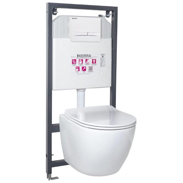 Podomítková toaletní sada Delos s tlačítkem Adriatic White. Technické údaje rámu : Práškově lakovaný ocelový rám - vysoká povrchová odolnost, zvýšená odolnost proti korozi, Bezešvá nádrž izolovaná polyuretanovou pěnou, Splachování 6,5/3 l. Nastavení průtoku splachování 6,5 ~ 8 l. / 1 ~ 3 l. Montáž - univerzální, na přední stranu stěny nebo do rohu, Šířka rámu - 53 cm, Nastavení výšky - 115 - 139 cm, Nastavení hloubky - 12-17,5 cm. Malá montážní hloubka šetří místo, Připojovací příslušenství je součástí balení. Rám je uzpůsoben pro montáž mís s montážní roztečí 18 a 23 cm. Tichý plnicí ventil v akustické třídě 1 (EN 14124) Rám smontovaný ve výrobě - snadnější a rychlejší instalace. Technické údaje o míse Delos Barva: bílý lesk Materiál: glazovaná keramika Odtok: 100 mm Odvodnění vody: horizontální Rozteč montážních otvorů: 180 mm Zařízení: Bílá tabule pomalu padající SLIM s rychloupínacím systémem Duroplast Miska má skrytý montážní systém, který se šroubuje skrz montážní otvory v desce systém se snadno instaluje panty desky montované shora pomocí kolíku/rozpěrného čepu rozety z matné (leštěné) oceli Dvoudílné splachovací tlačítko pro podomítkový rám toalety Určeno pro rám K-50 Slim Materiál: ABS Barva - bílá Rozměry - Šířka - 22,5 cm Výška - 16,5 cm Hloubka (po instalaci) - 1,3 cm