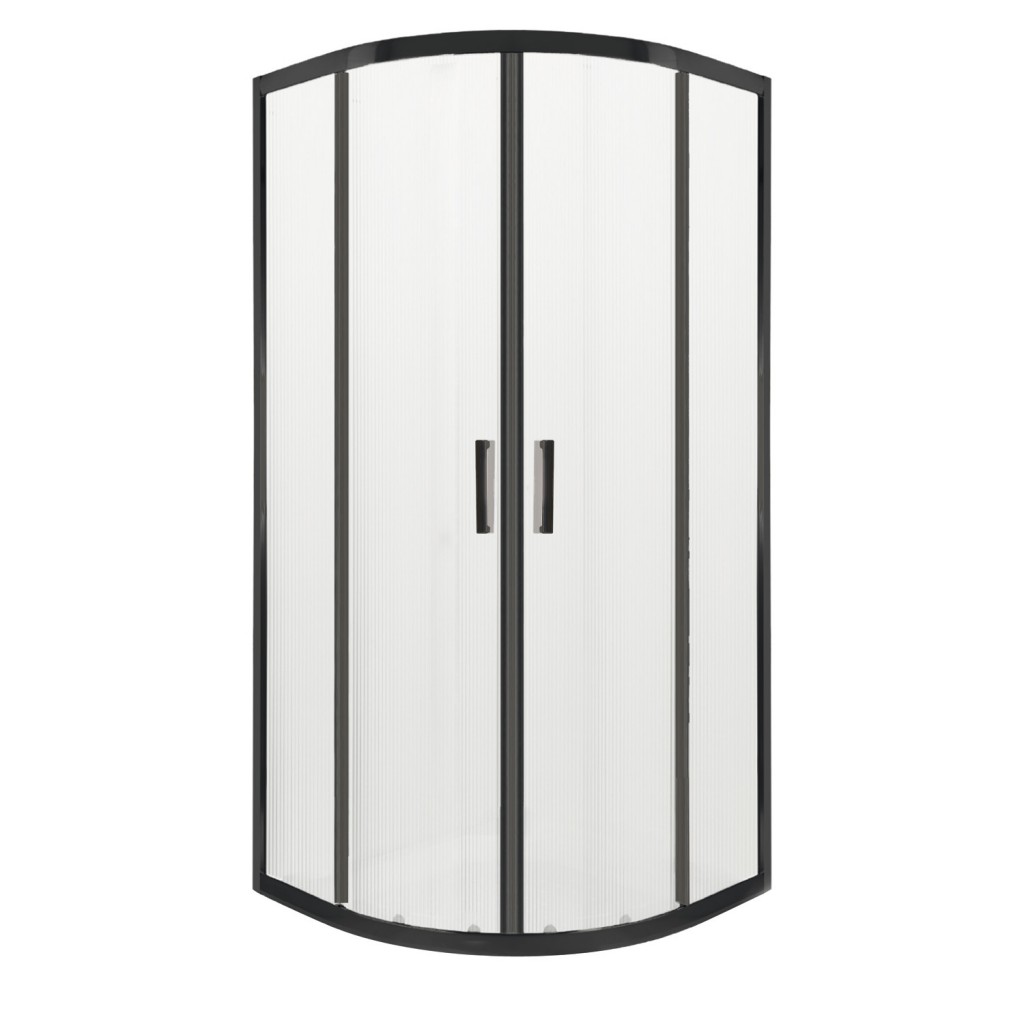 Sprchový kout bez vaničky Soho 80 Data : Rozměry - 79 x 79 x 190 cm Profily - hliník, černé Dveře - dvoukřídlé, posuvné Sklo - 6 mm, tvrzené, ornamentální "rýhované" Kabinu lze namontovat na podlahu nebo na sprchovou vaničku.