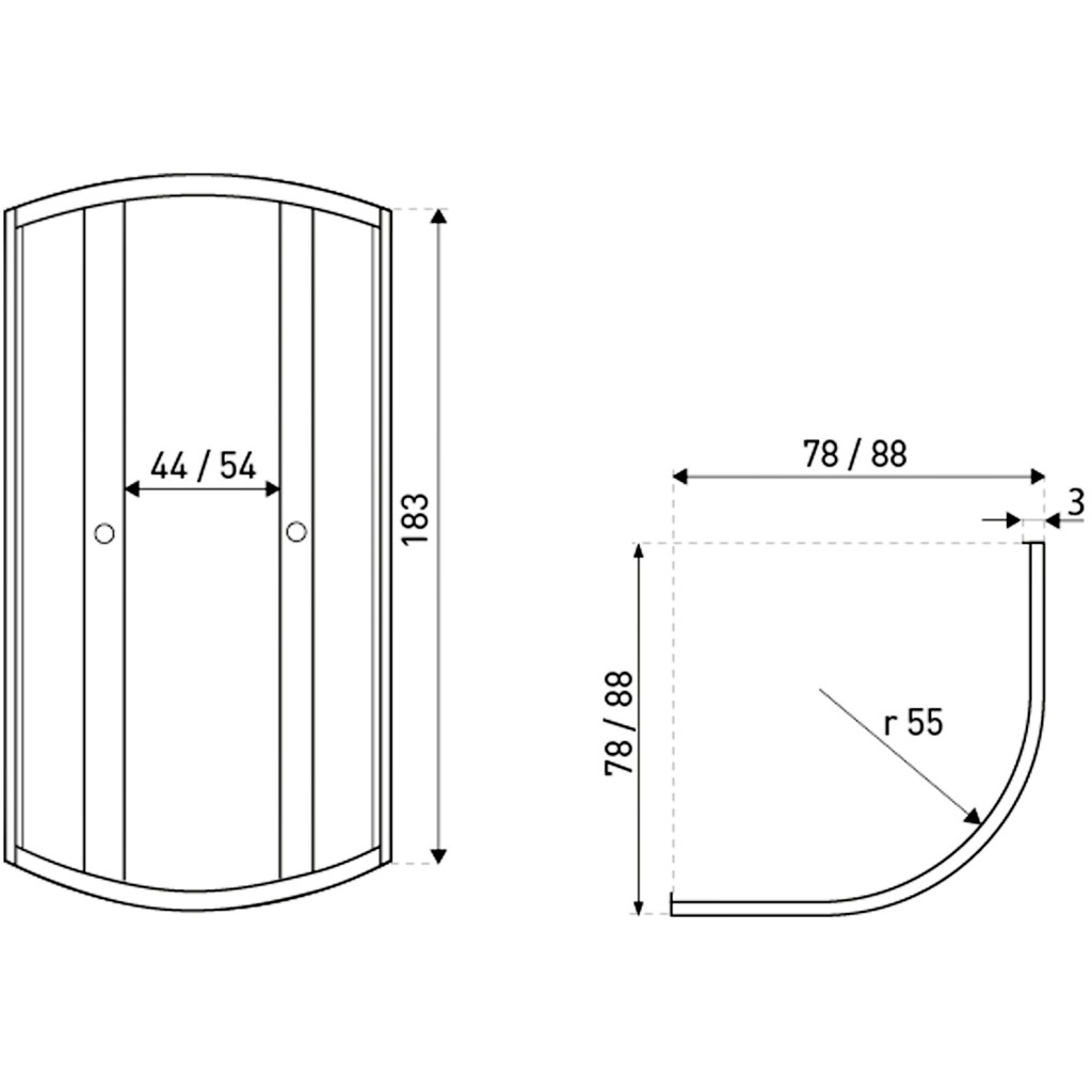 Sprchový kout bez vaničky, rozměry 88 × 88 pixelů, černý. Data: Rozměry - 88 × 88 × 183 cm Profily - hliník, černé Dveře - dvoukřídlé, posuvné Sklo - 4 mm, tvrzené, průhledné s dekorem (čtverečky)