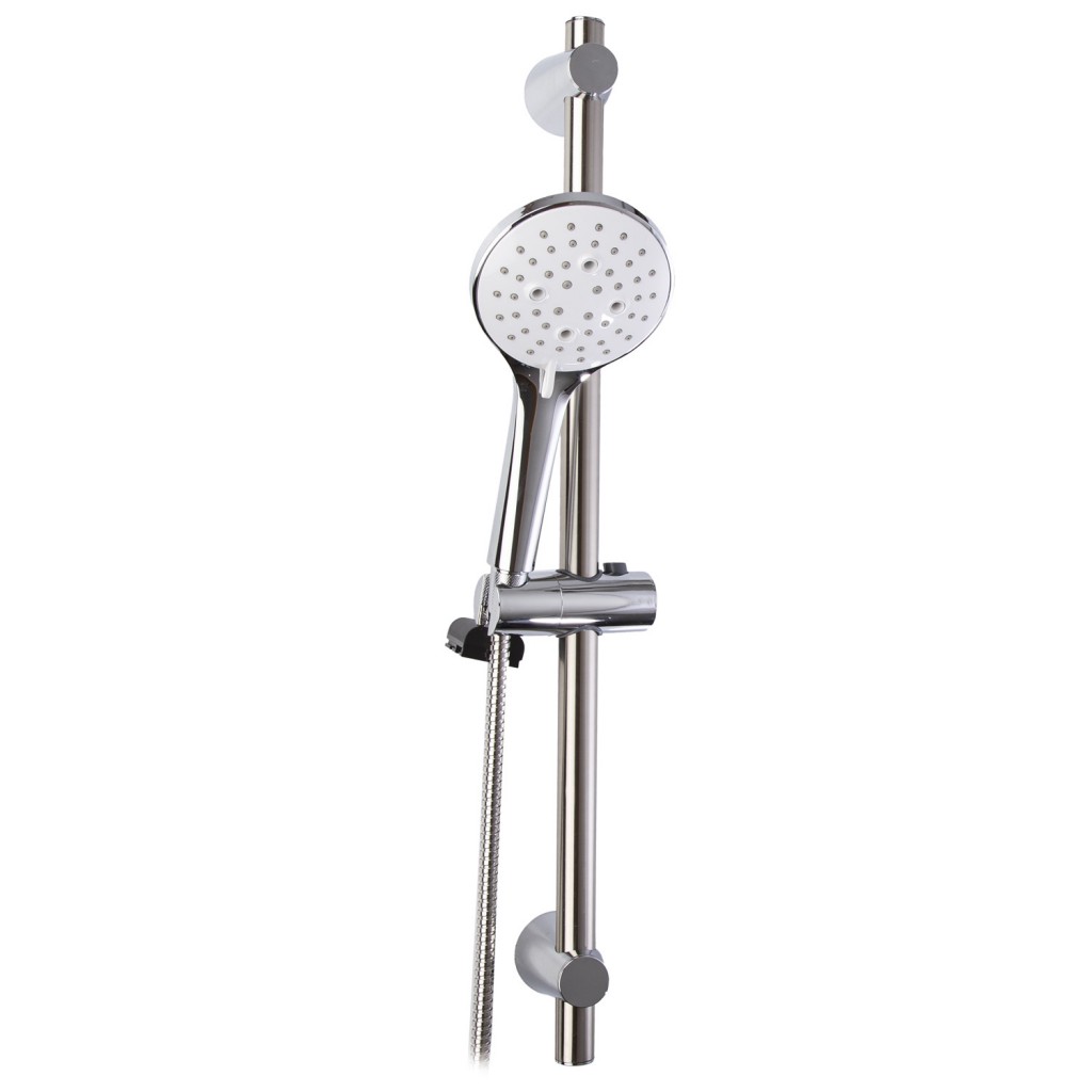 Sprchová sada Greta s tyčí a 3funkční rukojetí + hadicí - chrom Moderní a funkční sprchová sada s nastavitelnou 70cm tyčí je perfektním řešením pro každou koupelnu. Vybavena tříproudovou sprchovou hlavicí s anticalcem, 150cm ocelovou hadicí a nastavitelnou rukojetí. Sada zajišťuje pohodlí při používání a elegantní vzhled. Data: Typ – sprchová sada s nástěnnou tyčí, Výška tyče – 70 cm, Sluchátka – 3streamová, Průměr – 11,5 cm Držák ručního ovladače – nastavitelný, posouvatelný a naklápěcí Sprchová hadice - 150 cm ocelový oplet, chrom Barva - chrom