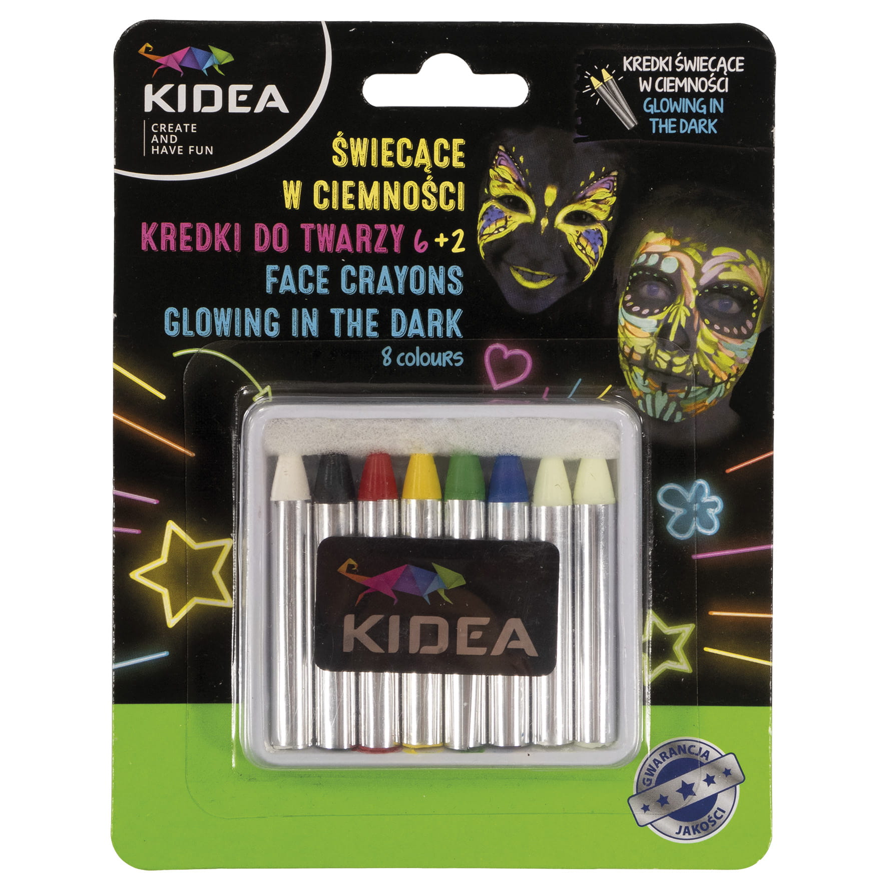 Sada barevných konturovacích tužek pro kreslení na obličej. Oživte párty či oslavu o zábavné kreslení na obličej. Sada obsahuje 8 konturovacích tužek, 2 tužky jsou fluorescenční a po aplikaci na kůži, září v noci. Dodáváno na blistr kartě. Pozn. barvy nejsou vhodné pro děti mladší 3 let, před použitím vyzkoušejte barvu na kousku kůže, kvůli případné alergické reakci!