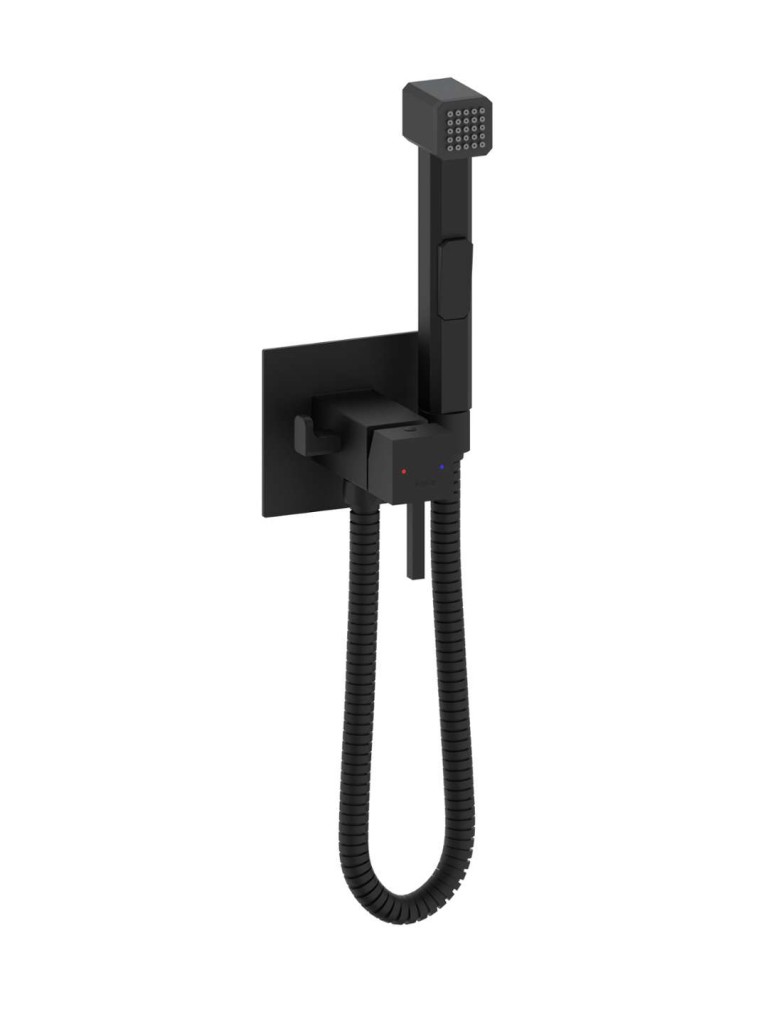 Páková podomítková baterie s bidetovou sprškou provedení matná černá s držákem sprchy, kovovou hadicí a sprchovou růžicí se STOP-ventilem baterie obsahuje podomítkové připojení 1/2" keramická kartuše 25 mm délka hadice 120 cm