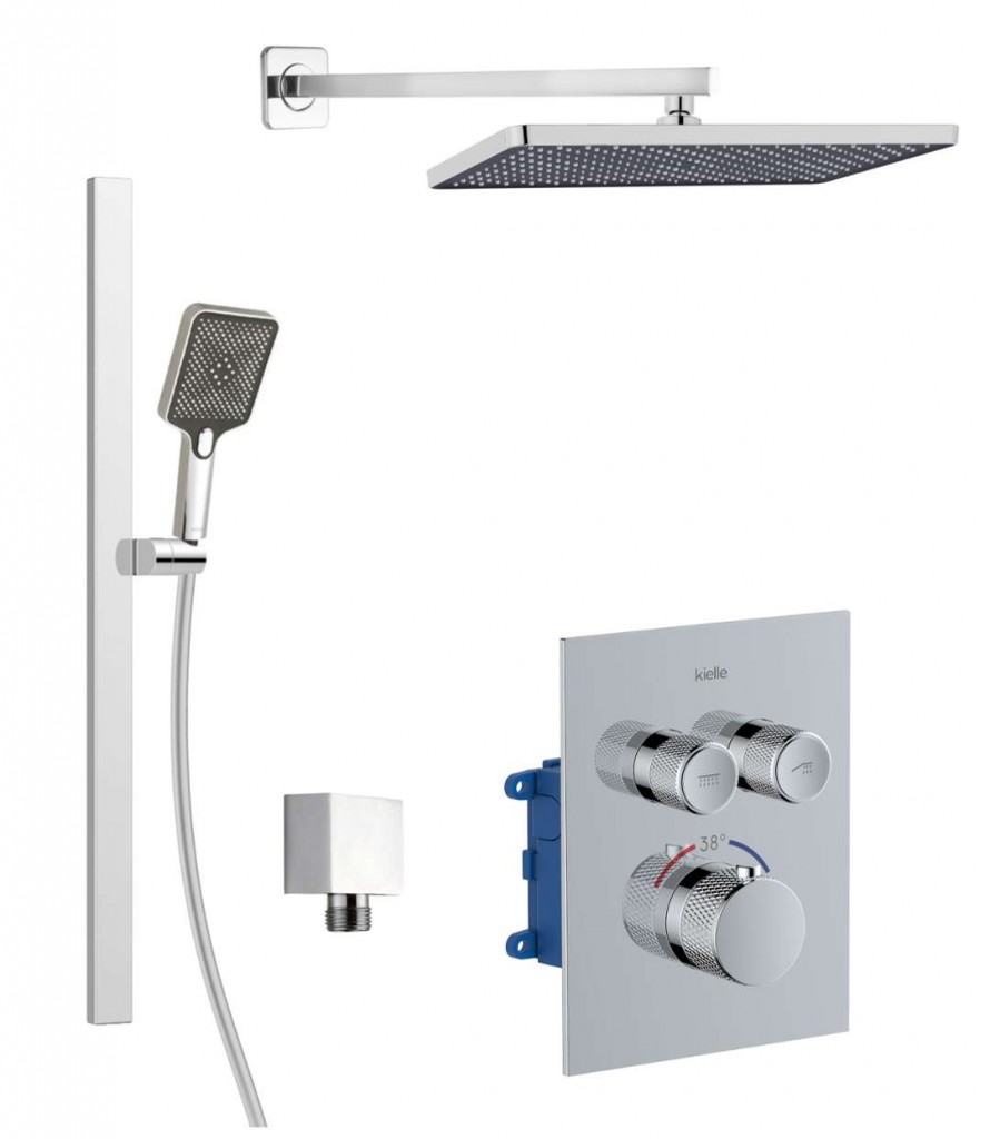 Domů Nábytek Koupelna Vodovodní baterie Kielle - Arkas I Termostatická baterie pod omítku, pro 2 spotřebiče, s příslušenstvím a tělesem, chrom 20627SPT30