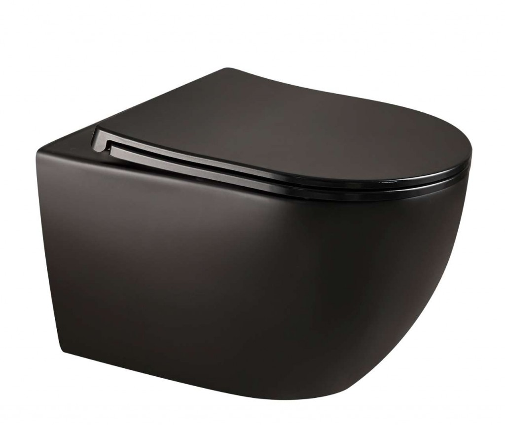 Závěsné WC Rimless bezokrajové provedení barva: matná černá rozměry: 360 x 525 m skryté upevnění hluboké splachování splachovací objem 4/6 l nelze osadit na instalační moduly s odsáváním zápachu WC sedátko slim s funkcí pomalého sklápění SoftClose barva: matná černá EasyLock lehce odnímatelné pro snadnou údržbu