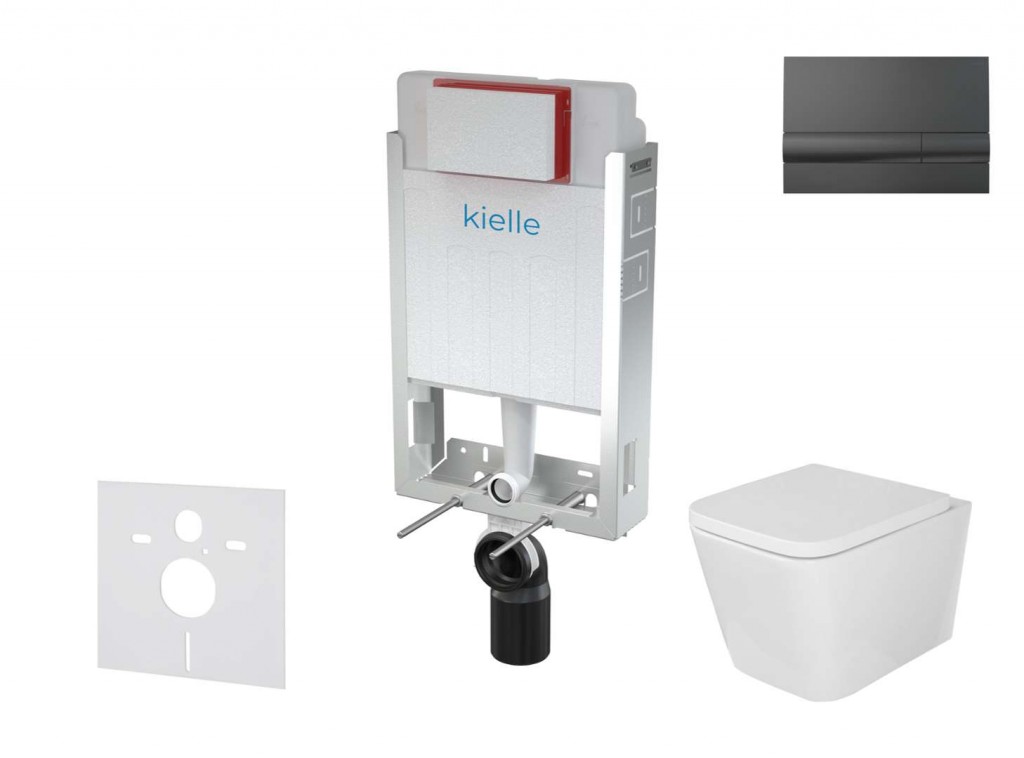 Set předstěnové instalace pro zazdění, klozetu se sedátkem softclose Arkas I a tlačítka Gemini I Set obsahuje předstěnový instalační modul pro závěsné WC, pro zazdívání soupravu pro tlumení hluku keramický závěsný klozet kielle Arkas I se sedátkem softclose 2-činné ovládací tlačítko kielle Gemini I, barva lesklá černá Předstěnový instalační modul pro závěsné WC, pro zazdívání Pro závěsné WC Pro zazdění a obezdění k nosné stěně – mokrý proces Pro montáž závěsného WC s připojovací roztečí 180 mm Vhodný pro rekonstrukce Vlastnosti Držák odpadu Duální splachování nezávisle nastavitelné s hygienickou rezervou Kompatibilní se všemi ovládacími tlačítky kielle Konstrukce polystyrenové izolace nádržky zjednodušuje zazdívání, zabraňuje rosení na povrchu nádržky a tlumí prostup vibrací z nádržky do stavební konstrukce Materiál nosné konzoly: pozinkovaný kov Montážní výška 1062 mm Možnost vestavby oddáleného nebo senzorového splachování Nádržka je vyrobena z jednoho kusu, čímž je zaručena 100% nepropustnost Pozinkovaná nostná konstrukce se čtyřmi výklopnými držáky pro snadnou instalaci Přívod vody zezadu Rohový ventil s možností na napojení na potrubní systém Mepla Stavební hloubka 125 mm Technické řešení umožňuje ukotvení do nerovného povrchu vysekaného do stěny bez nutnosti zarovnání zadní stěny v rozsahu 50 mm Vyjmutelný díl polystyrenu pro snadný přístup při instalaci Technické parametry Doporučený rozsah tlaku vody 0,3 – 0,5 MPa Funkční rozsah tlaku vody 0,05 – 1,6 MPa Hygienická rezerva 3 l Malé spláchnutí 2,5 - 3,5 l Velké spláchnutí 6 -9 l Objem vody v nádržce 9 l Připojení vody zezadu nebo shora montážními otvory G1/2 " Standardní nastavení malého spláchnutí 3 l Standardní nastavení velkého spláchnutí 6 l Zátěžová zkouška 400 kg Rozsah dodávky Fixační set pro uchycení WC mísy: závitová tyč M12 – 2 ks, podložky – 4 ks, krytka – 2 ks, matice – 2 ks, chránička závitu – 2 ks Fixační set: vrut Ø8×60 – 4 ks, hmoždinka Ø12 – 4 ks Koleno odpadu HT 90/110 polyethylen, PE-HD Nádrž s napouštěcí a vypouštěcí armaturou Pozinkovaný rám včetně nosné konstrukce Šroubení 1/2" pro připojení vody s integrovaným rohovým ventilem Schell 1/2"–3/8" Těsnění odpadu, propojka polypropylen, těsnění propojky Těsnění přívodu, vývodka polypropylen, vrapová vložka Protihluková sada pro závěsné WC nebo závěsný bidet pro montáž keramiky se vzdáleností upevnění 18 cm nebo 23 cm přerušuje přenos hluku u WC a bidetu materiál: polyetylén-pěna obsahuje: 1x zvukově izolační vložku, 2x podložku Set závěsného WC a sedátka Závěsné WC Rimless bezokrajové provedení barva: bílá rozměry: 350 x 505 mm skryté upevnění hluboké splachování splachovací objem 4/6 l WC sedátko s funkcí pomalého sklápění SoftClose barva: bílá lehce odnímatelné pro snadnou údržbu Ovládací tlačítko splachování Pro předstěnové instalační systémy a WC nádrže pro zazdění Kompatibilní se všemi předstěnovými instalačními systémy kielle Dvoučinné mechanické splachování Povrchová úprava: černá-lesk Materiál: plast ovládací síla < 20 N Rozsah dodávky Tlačítko Upevňovací rámeček tlačítka Závitová úchytka rámečku tlačítka 2 ks Šroub mechanismu splachování 2 ks Šablona pro nastavení šroubů tlačítek