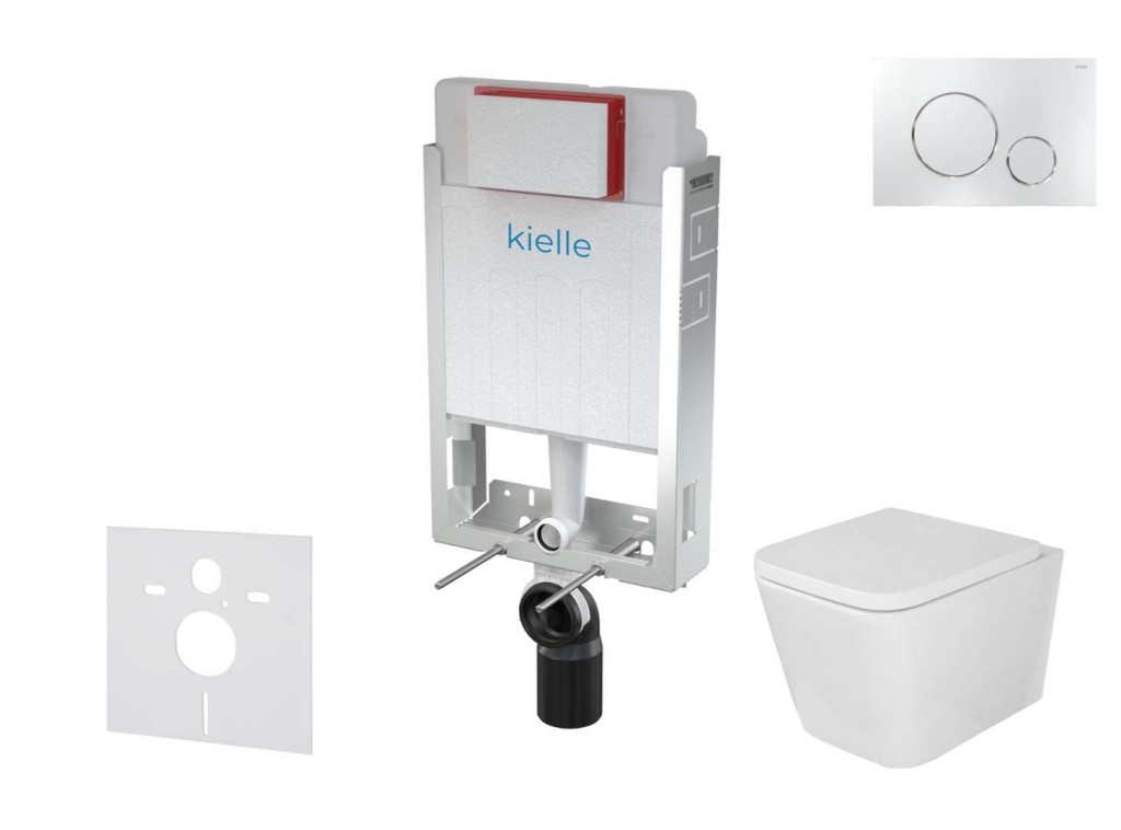 Set předstěnové instalace pro zazdění, klozetu se sedátkem softclose Arkas I a tlačítka Gemini II Set obsahuje předstěnový instalační modul pro závěsné WC, pro zazdívání soupravu pro tlumení hluku keramický závěsný klozet kielle Arkas I se sedátkem softclose 2-činné ovládací tlačítko kielle Gemini II, barva lesklý chrom Předstěnový instalační modul pro závěsné WC, pro zazdívání Pro závěsné WC Pro zazdění a obezdění k nosné stěně – mokrý proces Pro montáž závěsného WC s připojovací roztečí 180 mm Vhodný pro rekonstrukce Vlastnosti Držák odpadu Duální splachování nezávisle nastavitelné s hygienickou rezervou Kompatibilní se všemi ovládacími tlačítky kielle Konstrukce polystyrenové izolace nádržky zjednodušuje zazdívání, zabraňuje rosení na povrchu nádržky a tlumí prostup vibrací z nádržky do stavební konstrukce Materiál nosné konzoly: pozinkovaný kov Montážní výška 1062 mm Možnost vestavby oddáleného nebo senzorového splachování Nádržka je vyrobena z jednoho kusu, čímž je zaručena 100% nepropustnost Pozinkovaná nostná konstrukce se čtyřmi výklopnými držáky pro snadnou instalaci Přívod vody zezadu Rohový ventil s možností na napojení na potrubní systém Mepla Stavební hloubka 125 mm Technické řešení umožňuje ukotvení do nerovného povrchu vysekaného do stěny bez nutnosti zarovnání zadní stěny v rozsahu 50 mm Vyjmutelný díl polystyrenu pro snadný přístup při instalaci Technické parametry Doporučený rozsah tlaku vody 0,3 – 0,5 MPa Funkční rozsah tlaku vody 0,05 – 1,6 MPa Hygienická rezerva 3 l Malé spláchnutí 2,5 - 3,5 l Velké spláchnutí 6 -9 l Objem vody v nádržce 9 l Připojení vody zezadu nebo shora montážními otvory G1/2 " Standardní nastavení malého spláchnutí 3 l Standardní nastavení velkého spláchnutí 6 l Zátěžová zkouška 400 kg Rozsah dodávky Fixační set pro uchycení WC mísy: závitová tyč M12 – 2 ks, podložky – 4 ks, krytka – 2 ks, matice – 2 ks, chránička závitu – 2 ks Fixační set: vrut Ø8×60 – 4 ks, hmoždinka Ø12 – 4 ks Koleno odpadu HT 90/110 polyethylen, PE-HD Nádrž s napouštěcí a vypouštěcí armaturou Pozinkovaný rám včetně nosné konstrukce Šroubení 1/2" pro připojení vody s integrovaným rohovým ventilem Schell 1/2"–3/8" Těsnění odpadu, propojka polypropylen, těsnění propojky Těsnění přívodu, vývodka polypropylen, vrapová vložka Protihluková sada pro závěsné WC nebo závěsný bidet pro montáž keramiky se vzdáleností upevnění 18 cm nebo 23 cm přerušuje přenos hluku u WC a bidetu materiál: polyetylén-pěna obsahuje: 1x zvukově izolační vložku, 2x podložku Set závěsného WC a sedátka Závěsné WC Rimless bezokrajové provedení barva: bílá rozměry: 350 x 505 mm skryté upevnění hluboké splachování splachovací objem 4/6 l WC sedátko s funkcí pomalého sklápění SoftClose barva: bílá lehce odnímatelné pro snadnou údržbu Ovládací tlačítko splachování Pro předstěnové instalační systémy a WC nádrže pro zazdění Kompatibilní se všemi předstěnovými instalačními systémy kielle Tlačítko minimálně vystupuje nad obklad díky tlouštce pouhých 5,5 mm Dvoučinné mechanické splachování Povrchová úprava: chrom-lesk Materiál: plast ovládací síla < 20 N Rozsah dodávky Tlačítko Upevňovací rámeček tlačítka Závitová úchytka rámečku tlačítka 2 ks Šroub mechanismu splachování 2 ks Šablona pro nastavení šroubů tlačítek