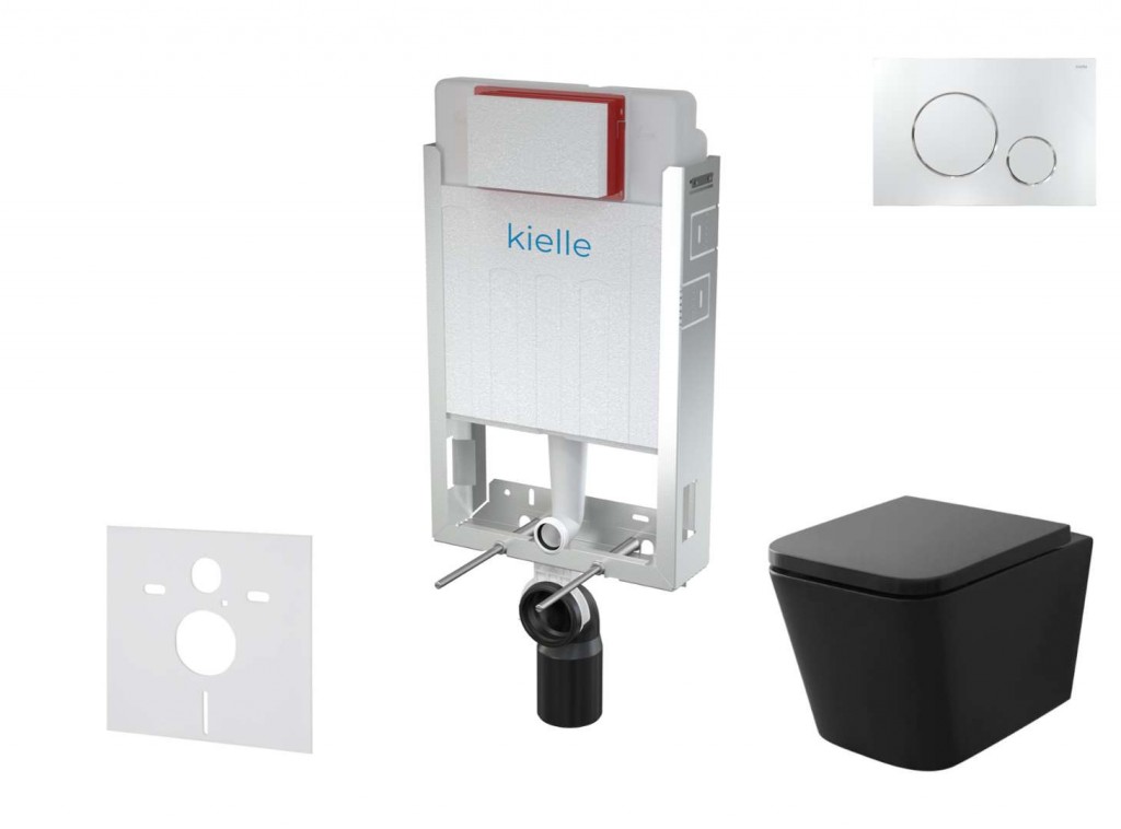 Set předstěnové instalace pro zazdění, klozetu se sedátkem softclose Arkas I a tlačítka Gemini II Set obsahuje předstěnový instalační modul pro závěsné WC, pro zazdívání soupravu pro tlumení hluku keramický závěsný klozet kielle Arkas I se sedátkem softclose, matná černá 2-činné ovládací tlačítko kielle Gemini II, barva lesklý chrom Předstěnový instalační modul pro závěsné WC, pro zazdívání Pro závěsné WC Pro zazdění a obezdění k nosné stěně – mokrý proces Pro montáž závěsného WC s připojovací roztečí 180 mm Vhodný pro rekonstrukce Vlastnosti Držák odpadu Duální splachování nezávisle nastavitelné s hygienickou rezervou Kompatibilní se všemi ovládacími tlačítky kielle Konstrukce polystyrenové izolace nádržky zjednodušuje zazdívání, zabraňuje rosení na povrchu nádržky a tlumí prostup vibrací z nádržky do stavební konstrukce Materiál nosné konzoly: pozinkovaný kov Montážní výška 1062 mm Možnost vestavby oddáleného nebo senzorového splachování Nádržka je vyrobena z jednoho kusu, čímž je zaručena 100% nepropustnost Pozinkovaná nostná konstrukce se čtyřmi výklopnými držáky pro snadnou instalaci Přívod vody zezadu Rohový ventil s možností na napojení na potrubní systém Mepla Stavební hloubka 125 mm Technické řešení umožňuje ukotvení do nerovného povrchu vysekaného do stěny bez nutnosti zarovnání zadní stěny v rozsahu 50 mm Vyjmutelný díl polystyrenu pro snadný přístup při instalaci Technické parametry Doporučený rozsah tlaku vody 0,3 – 0,5 MPa Funkční rozsah tlaku vody 0,05 – 1,6 MPa Hygienická rezerva 3 l Malé spláchnutí 2,5 - 3,5 l Velké spláchnutí 6 -9 l Objem vody v nádržce 9 l Připojení vody zezadu nebo shora montážními otvory G1/2 " Standardní nastavení malého spláchnutí 3 l Standardní nastavení velkého spláchnutí 6 l Zátěžová zkouška 400 kg Rozsah dodávky Fixační set pro uchycení WC mísy: závitová tyč M12 – 2 ks, podložky – 4 ks, krytka – 2 ks, matice – 2 ks, chránička závitu – 2 ks Fixační set: vrut Ø8×60 – 4 ks, hmoždinka Ø12 – 4 ks Koleno odpadu HT 90/110 polyethylen, PE-HD Nádrž s napouštěcí a vypouštěcí armaturou Pozinkovaný rám včetně nosné konstrukce Šroubení 1/2" pro připojení vody s integrovaným rohovým ventilem Schell 1/2"–3/8" Těsnění odpadu, propojka polypropylen, těsnění propojky Těsnění přívodu, vývodka polypropylen, vrapová vložka Protihluková sada pro závěsné WC nebo závěsný bidet pro montáž keramiky se vzdáleností upevnění 18 cm nebo 23 cm přerušuje přenos hluku u WC a bidetu materiál: polyetylén-pěna obsahuje: 1x zvukově izolační vložku, 2x podložku Set závěsného WC a sedátka Závěsné WC Rimless bezokrajové provedení barva: matná černá rozměry: 350 x 505 mm skryté upevnění hluboké splachování splachovací objem 4/6 l WC sedátko s funkcí pomalého sklápění SoftClose barva: černá lehce odnímatelné pro snadnou údržbu Ovládací tlačítko splachování Pro předstěnové instalační systémy a WC nádrže pro zazdění Kompatibilní se všemi předstěnovými instalačními systémy kielle Tlačítko minimálně vystupuje nad obklad díky tlouštce pouhých 5,5 mm Dvoučinné mechanické splachování Povrchová úprava: chrom-lesk Materiál: plast ovládací síla < 20 N Rozsah dodávky Tlačítko Upevňovací rámeček tlačítka Závitová úchytka rámečku tlačítka 2 ks Šroub mechanismu splachování 2 ks Šablona pro nastavení šroubů tlačítek
