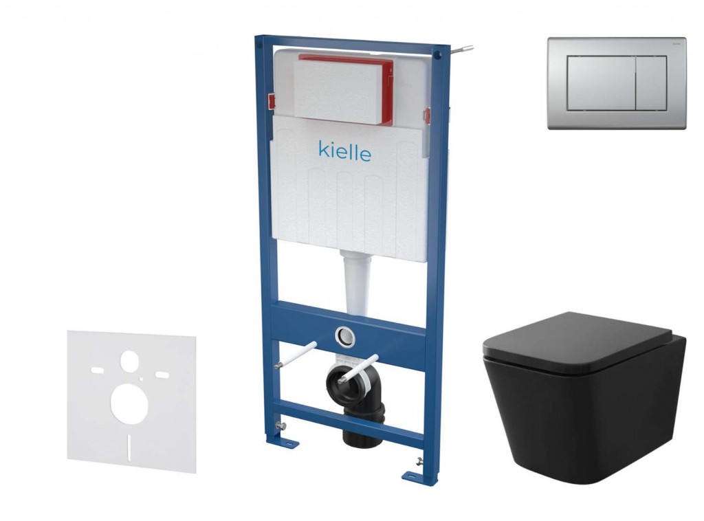 Set předstěnové instalace, klozetu se sedátkem softclose Arkas I a tlačítka Gemini III Set obsahuje předstěnový instalační modul kielle Genesis se splachovací nádržkou pod omítku soupravu pro tlumení hluku keramický závěsný klozet kielle Arkas I se sedátkem softclose 2-činné ovládací tlačítko kielle Gemini III, barva matný chrom Předstěnový instalační modul pro závěsné WC Pro závěsné WC Pro montáž před nosnou stěnu nebo do sádrokartonové konstrukce Pro tlouštku podlah 0–200 mm Pro montáž závěsného WC s připojovací roztečí 180 mm Vlastnosti Držák odpadu Duální splachování nezávisle nastavitelné s hygienickou rezervou Kompatibilní se všemi ovládacími tlačítky značky kielle Konstrukce polystyrenové izolace zabraňuje rosení na povrchu nádržky a tlumí prostup vibrací z nádržky do stavební konstrukce Konstrukce rámu dovoluje kotvení k samostatné dostatečně nosné sádrokartonové příčce nebo před nosnou stěnu Materiál nosné konstrukce: kov ošetřený práškovou barvou Možnost vestavby oddáleného nebo senzorového splachování Možnost vyklopení nádržky pro snadnou montáž do dřevostaveb nebo mobilních buněk Nádržka je vyrobena z jednoho kusu, čímž je zaručena 100% nepropustnost Nainstalovaný systém se zaklopí sádrokartonovými deskami a nejsou potřeba žádné přídavné vyztužující ani kotvicí prvky Nastavitelné kotvící výsuvné nohy s brzdou v rozmezí 0–200 mm Přívod vody zezadu Rohový ventil s možností napojení na potrubní systém Mepla Stavební hloubka 125 mm Viditelné označení nivelace na nádržce Závěsy nádržky s dvoukomponentního materiálu izolují přenos vibrací z budov Technické parametry Doporučený rozsah tlaku vody 0,3 – 0,5 MPa Funkční rozsah tlaku vody 0,05 – 1,6 MPa Hygienická rezerva 3 l Malé spláchnutí 2,5 – 3,5 l Velké spláchnutí 6 - 9 l Objem vody v nádržce 9 l Připojení vody zezadu nebo shora montážními otvory G1/2 " Standardní nastavení malého spláchnutí 3 l Standardní nastavení velkého spláchnutí 6 l Zátěžová zkouška 400 kg Rozsah dodávky Fixační set pro uchycení WC mísy: závitová tyč M12 – 2 ks, podložky – 4 ks, krytka – 2 ks, matice – 2 ks, chránička závitu – 2 ks Fixační set: vrut Ø8×60 – 4 ks, hmoždinka Ø12 – 4 ks Koleno odpadu HT 90/90 polyethylen, PE-HD Kombi šroub M10 x 180 2 ks Nádrž s napouštěcí a vypouštěcí armaturou Polystyrenový kryt servisního otvoru Redukce odpadu HT 90/110 polyethylen, PE+HD Samonosný rám Šroubení 1/2" pro připojení vody s integrovaným rohovým ventilem 1/2"–3/8" Těsnění odpadu, propojka polypropylen, těsnění propojky Těsnění přívodu, vývodka polypropylen, vrapová vložka Protihluková sada pro závěsné WC nebo závěsný bidet pro montáž keramiky se vzdáleností upevnění 18 cm nebo 23 cm přerušuje přenos hluku u WC a bidetu materiál: polyetylén-pěna obsahuje: 1x zvukově izolační vložku, 2x podložku Set závěsného WC a sedátka Závěsné WC Rimless bezokrajové provedení barva: matná černá rozměry: 350 x 505 mm skryté upevnění hluboké splachování splachovací objem 4/6 l WC sedátko s funkcí pomalého sklápění SoftClose barva: černá EasyLock lehce odnímatelné pro snadnou údržbu Ovládací tlačítko splachování Pro předstěnové instalační systémy a WC nádrže pro zazdění Kompatibilní se všemi předstěnovými instalačními systémy kielle Dvoučinné mechanické splachování Povrchová úprava: chrom-mat Materiál: plast ovládací síla < 20 N Rozsah dodávky Tlačítko Upevňovací rámeček tlačítka Závitová úchytka rámečku tlačítka 2 ks Šroub mechanismu splachování 2 ks Šablona pro nastavení šroubů tlačítek