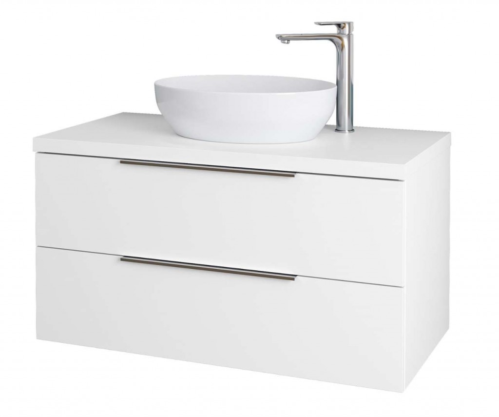 Umyvadlová skříňka včetně desky s výřezem rozměr skříňky: 1000 x 536 x 500 mm materiál: LTD laminát s ABS hranou, hrany lepené PUR lepidlem přední i boční strana skříňky lesklá bílá 2 zásuvky pojezdy zásuvek s pomalým dojezdem a systémem automatického dovření chromové úchytky deska s výřezem pro umyvadlo průměr výřezu 120 mm instalace zavěšením na stěnu umyvadlo a baterie nejsou součástí balení, je třeba je objednat samostatně Dodáváno ve smontovaném stavu