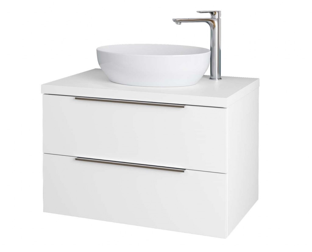 Umyvadlová skříňka včetně desky s výřezem rozměr skříňky: 800 x 536 x 500 mm materiál: LTD laminát s ABS hranou, hrany lepené PUR lepidlem přední i boční strana skříňky lesklá bílá 2 zásuvky pojezdy zásuvek s pomalým dojezdem a systémem automatického dovření chromové úchytky deska s výřezem pro umyvadlo průměr výřezu 120 mm instalace zavěšením na stěnu umyvadlo a baterie nejsou součástí balení, je třeba je objednat samostatně Dodáváno ve smontovaném stavu