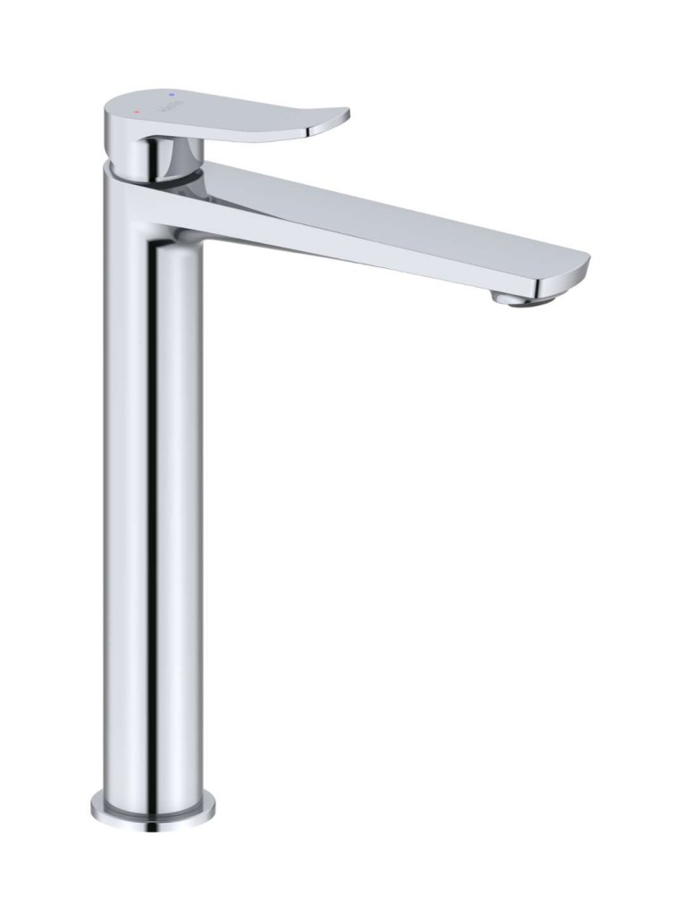 Vysoká baterie pro umyvadlovou mísu stojánková ovládání pákou bez výpusti provedení chrom perlátor Neoperl Cascade SLC - jednoduchým promnutím síťky perlátoru se odstraní usazený vodní kámen průtok 5 l/min keramická kartuše 25 mm rychlomontážní systém upevnění flexi připojovací hadičky 40 cm