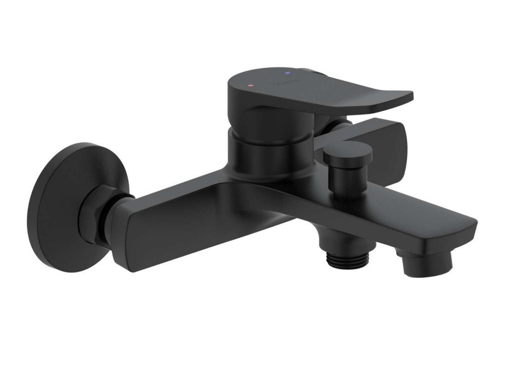 Nástěnná páková vanová baterie montáž na stěnu rozteč: 150 mm ovládání pákou provedení matná černá perlátor Neoperl Cascade SLC - jednoduchým promnutím síťky perlátoru se odstraní usazený vodní kámen průtok 35 l/min keramická kartuše 35 mm přepínač s automatickým vracením do původní polohy s možností aretace