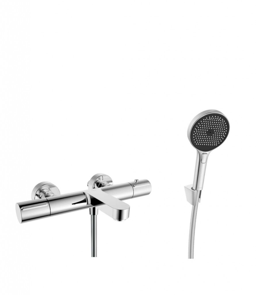 Termostatická vanová baterie barevné provedení chrom termostatická kartuše montáž na stěnu rozteč: 150 mm kulaté krycí rozety bezpečnostní zarážka při 38°C přepínání vana/sprcha sprchová souprava obsahuje ruční sprchu 130 mm, 3 proudy průměr 130 mm 3 druhy proudů - jemný SilkFlow, intenzivní, masážní EasyClick pohodlné přepínání druhů proudu tlačítkem barevné provedení: chrom / černá vybavena funkcí snadného čištění trysek TouchClean – vodní kámen lze z povrchu trysek jednoduše setřít sprchovou hadici 1500 mm délka 1500 mm z odolného plastu s jednotným stříbrným povrchem hladký povrch pro snadné čištění AntiTwist - systém proti překroucení, který je ukrytý v kónusu sprchové hadice nástěnný držák sprchy materiál: plast provedení: chrom
