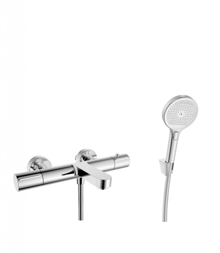 Termostatická vanová baterie barevné provedení chrom termostatická kartuše montáž na stěnu rozteč: 150 mm kulaté krycí rozety bezpečnostní zarážka při 38°C přepínání vana/sprcha sprchová souprava obsahuje ruční sprchu 130 mm, 3 proudy průměr 130 mm 3 druhy proudů - jemný SilkFlow, intenzivní, masážní EasyClick pohodlné přepínání druhů proudu tlačítkem barevné provedení: chrom / bílá vybavena funkcí snadného čištění trysek TouchClean – vodní kámen lze z povrchu trysek jednoduše setřít sprchovou hadici 1500 mm délka 1500 mm z odolného plastu s jednotným stříbrným povrchem hladký povrch pro snadné čištění AntiTwist - systém proti překroucení, který je ukrytý v kónusu sprchové hadice nástěnný držák sprchy materiál: plast provedení: chrom