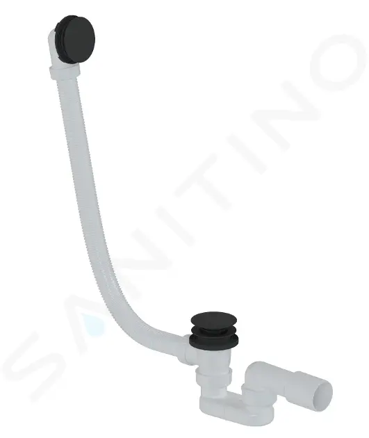 Vanová odtoková a přepadová souprava délka: 1000 mm (lze zkrátit na požadovanou délku) bez napouštění ovládání click-clack materiál: ABS plast barva: matná černá včetně sifonu