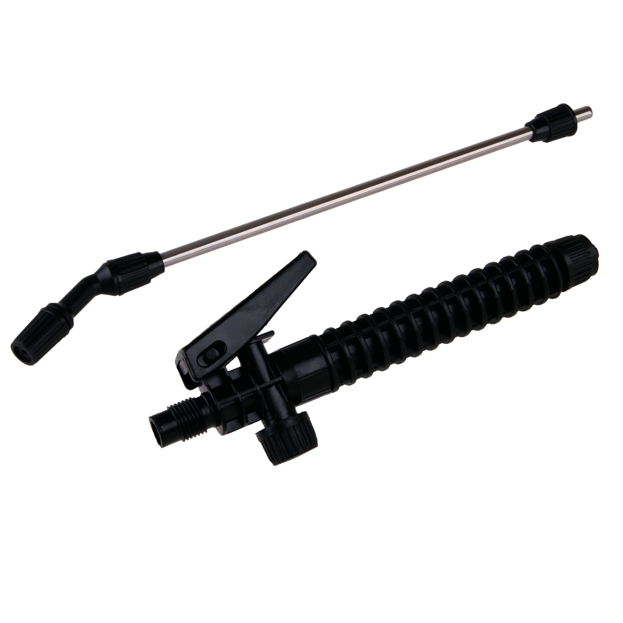 Jedná se o sadu plastového spouštěče s kovovou trubkou a plastovou tryskou. Ventil je opatřen převlečnou matkou pro upevnění hadice. Náhraní díl k tlakovým postřikovačům. Pro hadici: 1/4" ( 6 mm ) Délka trubky: 37 cm