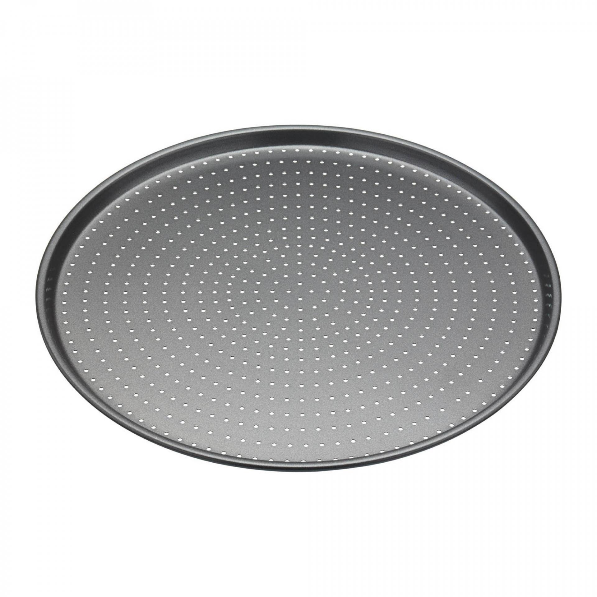Kitchen Craft Kulatý plech na pečení Pizza Tray ⌀ 32 cm, šedá barva, kov. Není nad křupavou pizzu! Díky tomuto kulatému plechu se vám každá povede! Forma má malé dírky na spodní straně, takže teplý vzduch může proudit i na spodní stranu těsta a díky tomu, bude vždy přesně taková, jak ji máte nejraději.