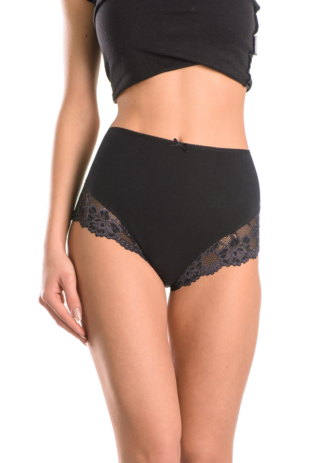 Dámské kalhotky, které jsou ušité z jednobarevné bavlny s přídavkem elastanu (5 %). Model je ozdobený krajkovými vsadkami a na bocích je zvýšený a plnější. Kalhotky jsou balené v krabičce po dvou kusech.