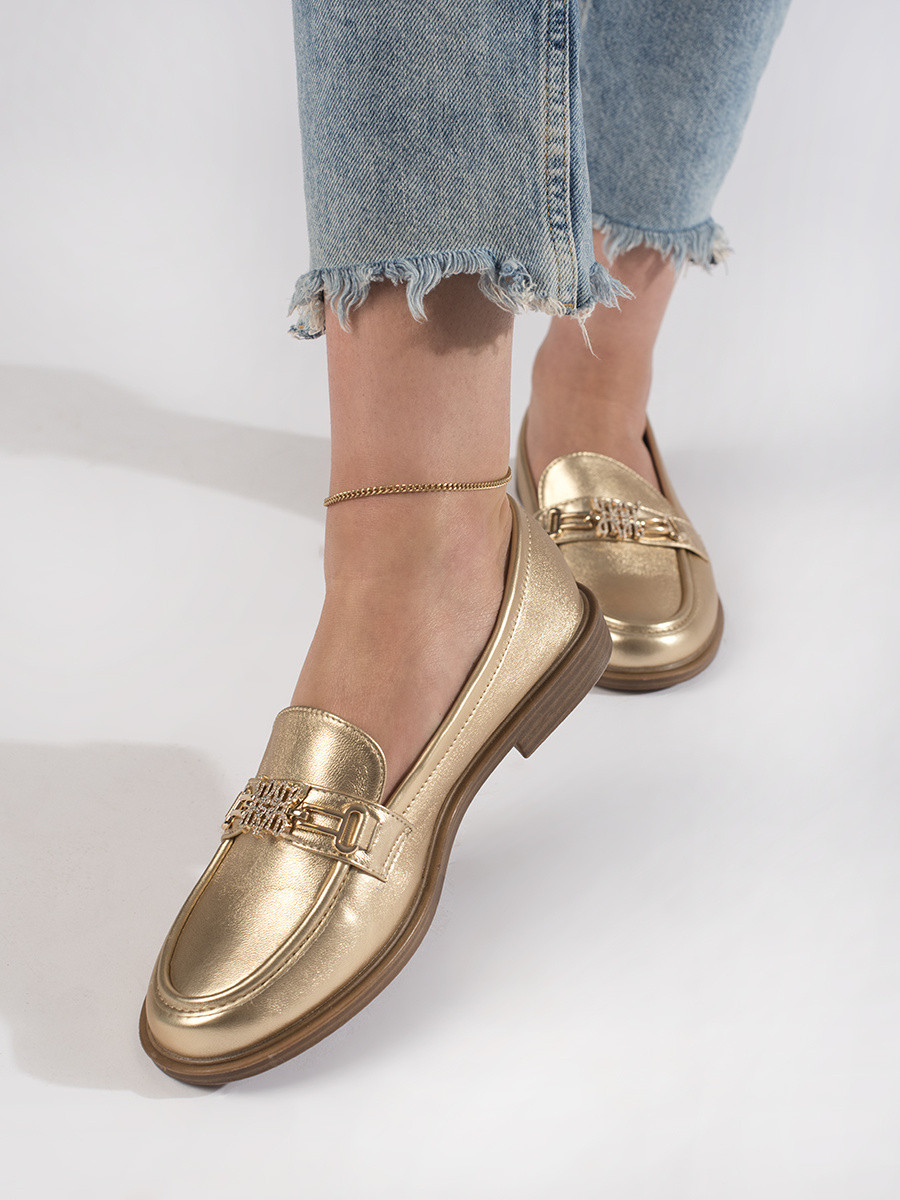 Klasické dámské mokasíny zlaté na plochém podpatku 36