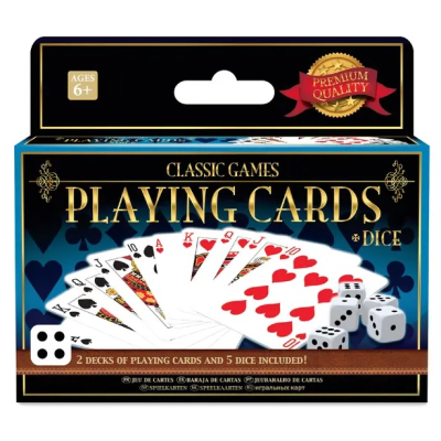 Klasické hry – 2 balíčky hracích karet a 5 kostek