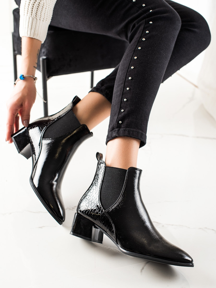 Klasické kotníčkové boty dámské černé na širokém podpatku 37