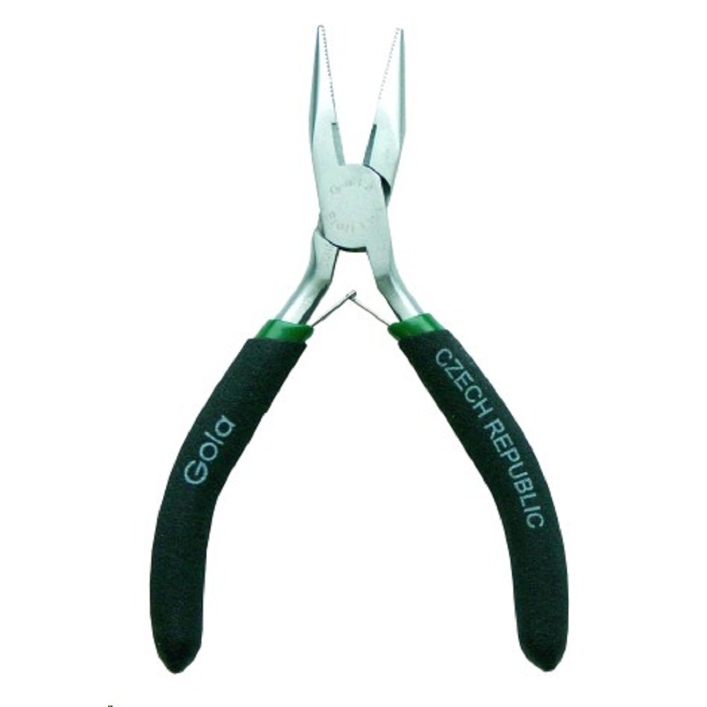 Kleště pro jemnou mechaniku - mini 120 mm GOLA 015120 Nářadí poskytuje svým uživatelům vysokou kvalitu při velice příznivé ceně. Toto nářadí je určeno pro průmyslovou aplikaci i do dílen kutilů. Kleště jsou vyráběny z chrom-vanadiové oceli, která po tepelném zpracování zaručuje vysokou tvrdost a pevnost především na čelistech a ostří. Povrchová úprava perleťový nikl dává kleštím atraktivní vzhled a zabezpečuje ochranu proti korozi. Rukojeti mají ergonomické tvary a jsou zhotoveny ze dvou barevně odlišených materiálů o různé tvrdosti. Měkčí materiál je vždy na vnější straně rukojeti a tak zabezpečuje příjemné držení kleští v ruce. Rozměr: 120 mm.