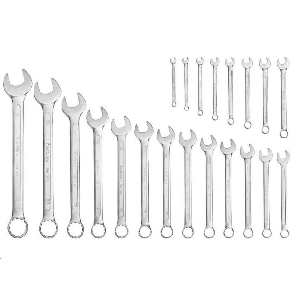 Klíče očkoploché sada 21ks 6-32mm FORTUM Charakteristika: Kované z jednoho kusu chrom-vanadové oceli, ošetřené dvěma vrstvami niklu a jednou vrstvou chromu. Kvalitou, pevností a rozměry plně odpovídají normám ISO/DIN. Na dílenských klíčích toho není mnoho ke zlepšování. Tak jsme je alespoň vyrobili dokonalé. A přidali jsme jedinečné pouzdro ForDure™ – pevné, lehké a praktické. Dvouvrstvá odolná tkanina obšitá silným lemem. Kapsy z pevné síťoviny, v nichž se nedrží vlhkost ani nečistota. Přehledně vyznačené rozměry, oka po obvodu na zavěšení ve Vaší dílně. Rychlé sbalení pomocí suchého zipu. 61CrV5 a 61CrV4 (označovaná tako 6150 a 6140) je nejvyšší třída chrom-vanadové oceli. Kalená a povrchově upravená matným tvrdochromem pro dosažení optimální povrchové tvrdosti a odolnosti vůči korozivním vlivům je tato ocel použita pro všechny díly s výjimkou těch nejexponovanějších. technické parametry: 6-32mm doplňující parametr: 6-7-8-9-10-11-12-13-14-15-16-17-18-19-20-21-22-24-27-30-32mm