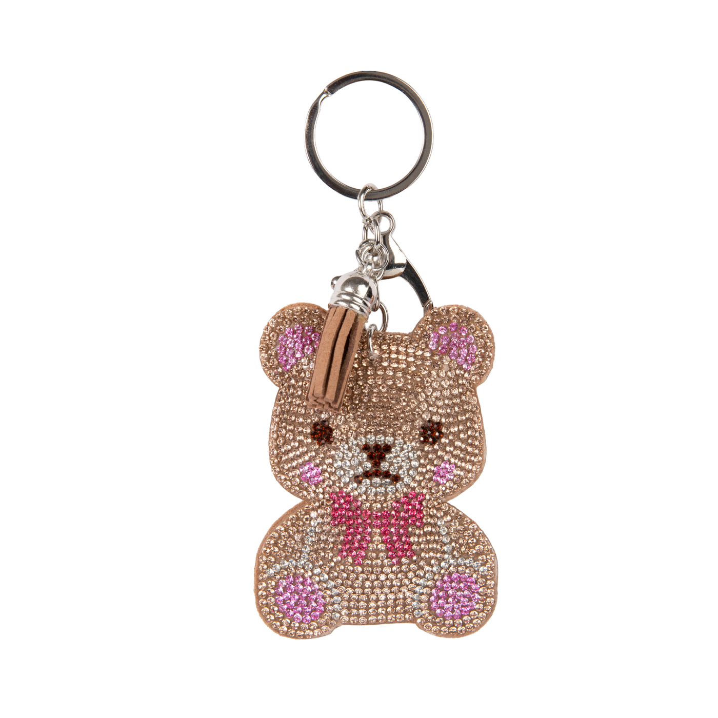 Štrasová klíčenka posázená třpytivými kamínky potěší každou ženu. Karabinka s kroužkem zaručí, že si klíčenku můžete kamkoli připnout. Materiál: polyester, sklo, železo, slitina zinku.