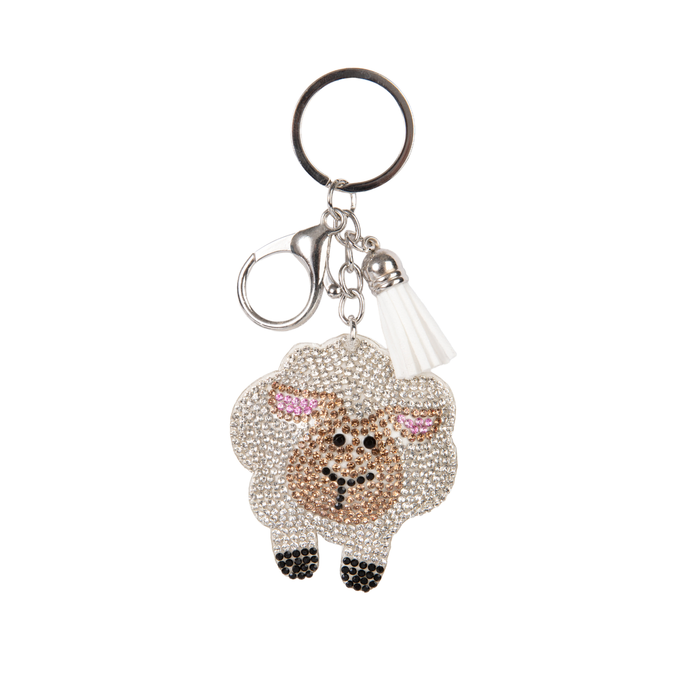 Štrasová klíčenka posázená třpytivými kamínky potěší každou ženu. Karabinka s kroužkem zaručí, že si klíčenku můžete kamkoli připnout. Materiál: polyester, sklo, železo, slitina zinku.