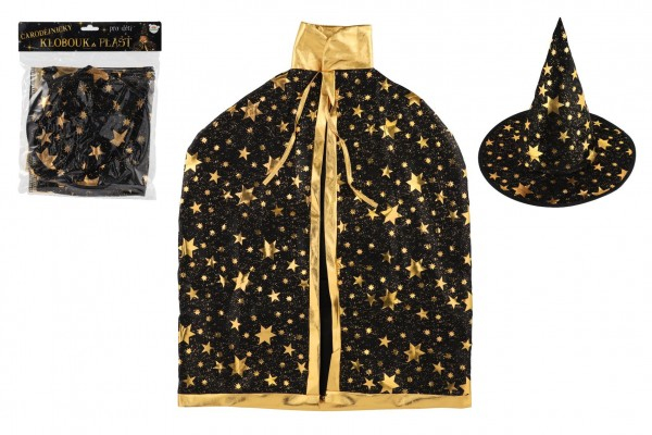 Dětský čarodějnický klobouk a plášť jsou inspirovány světem kouzel a magie. Mají černou barvu a jsou zdobené zlatými hvězdami, které vzbuzují čarodějnický dojem. Děti si mohou hrát na kouzelníky a kouzelnice, zkoumat svět kouzel a vytvářet své vlastní příběhy plné dobrodružství a fantazie. Čarodějnický klobouk s pláštěm jsou oblíbenou součástí karnevalových a halloweenských kostýmů. Není hračka
