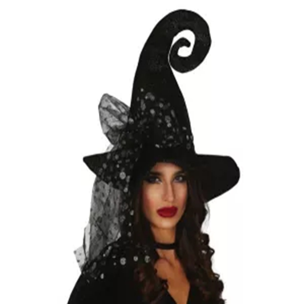 Tento černý čarodějnický klobouk s nápadnou mašlí je přesně to, co potřebuješ, aby ses proměnila v neodolatelnou čarodějku.