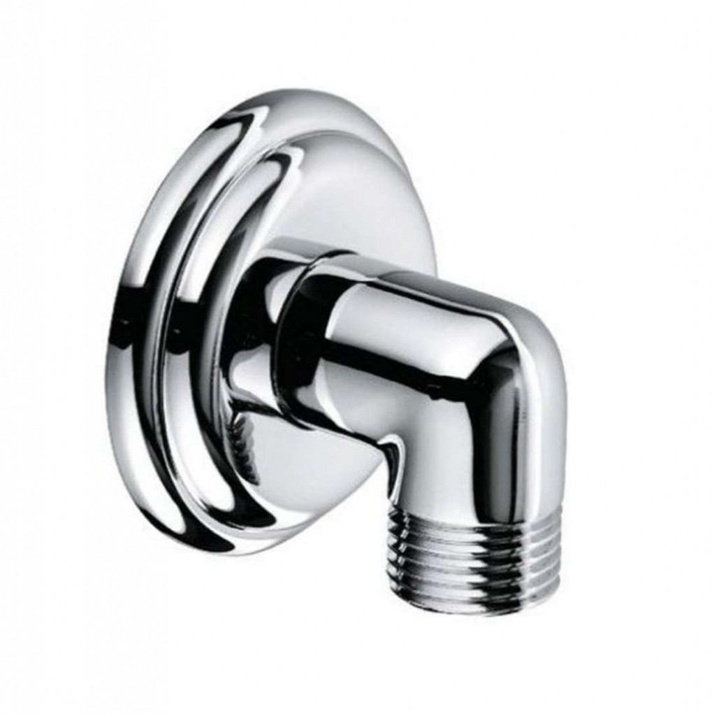 Připojovací kolínko podomítkový vývod kompatibilní s hadicemi ke sprchovým bateriím druh připojení: úhlový přívod barva: chrom materiál: mosaz průměr rozety: 56 mm připojení: 2x G 1/2 konstrukce: stěnová montáž DN 15 Ilustrační foto